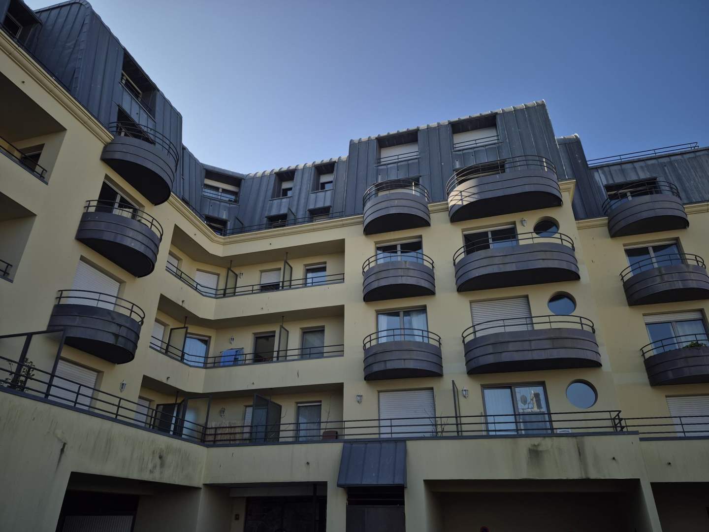 Huisseries mixtes aluminium / bois, double vitrage, volet roulant électrique sauf dans la cuisine, et un cassé dans une chambre.
