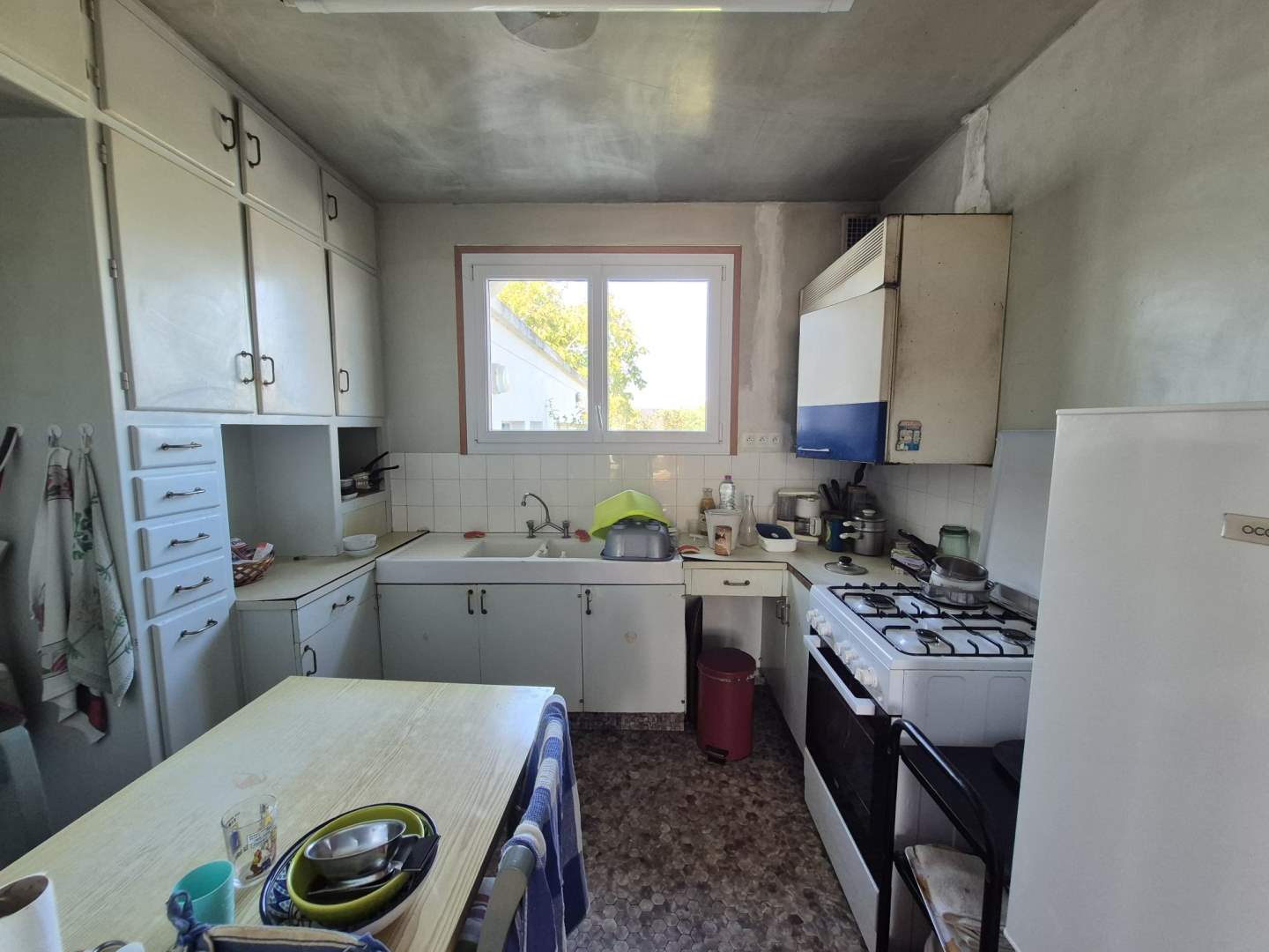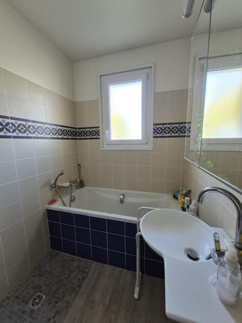 A 800 m du centre, maison de plain-pied à rénover offrant 81m² sur joli terrain plat de 1241m² comprenant :