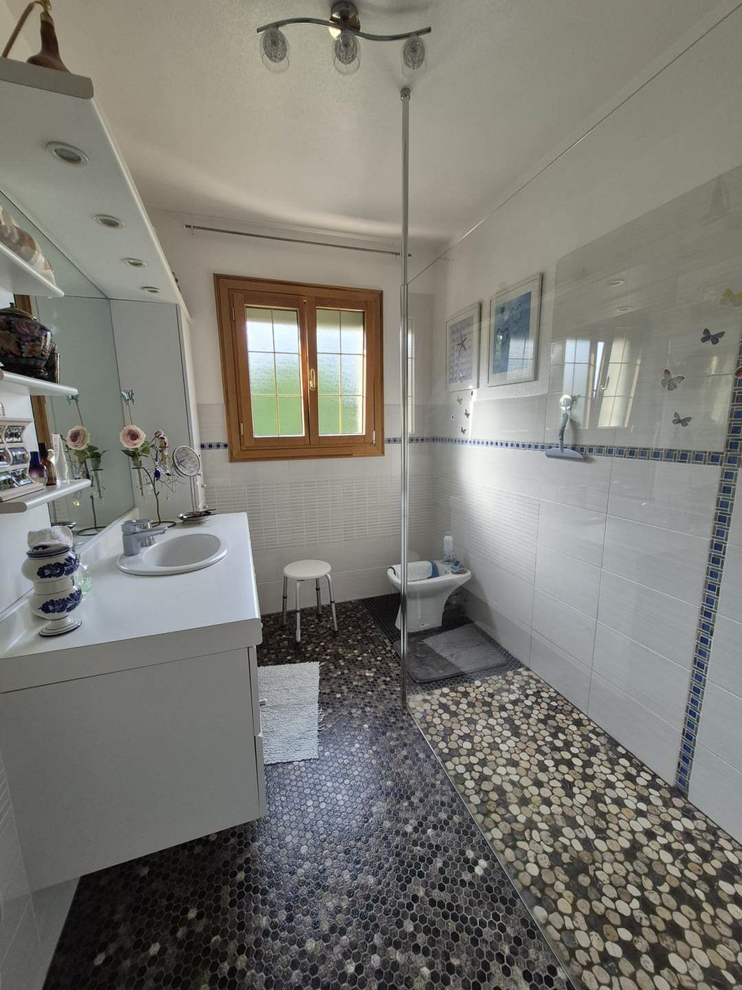 - A l'étage : palier, 2 chambres, salle d'eau avec wc, grenier, débarras
