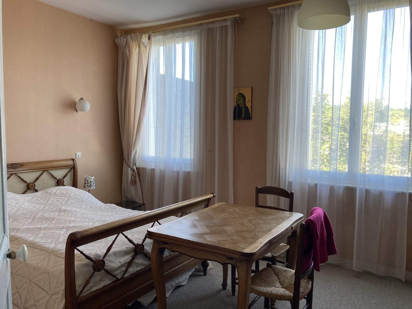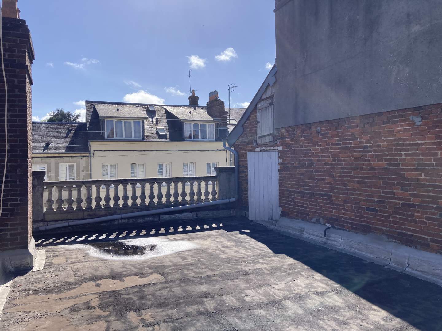 Au deuxième étage : deux chambres, une petite pièce, terrasse avec vue sur les toits de la ville.