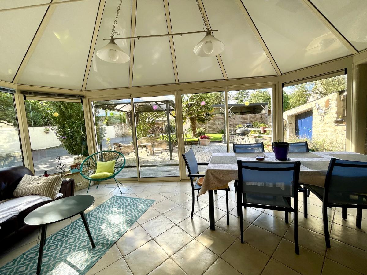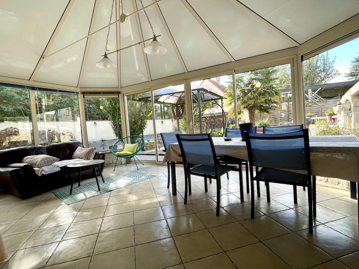 - au RDC : véranda lumineuse, espace cuisine A/E, salon/séjour chaleureux avec une cheminée à foyer ouvert, wc indépendant, chaufferie et cave,
