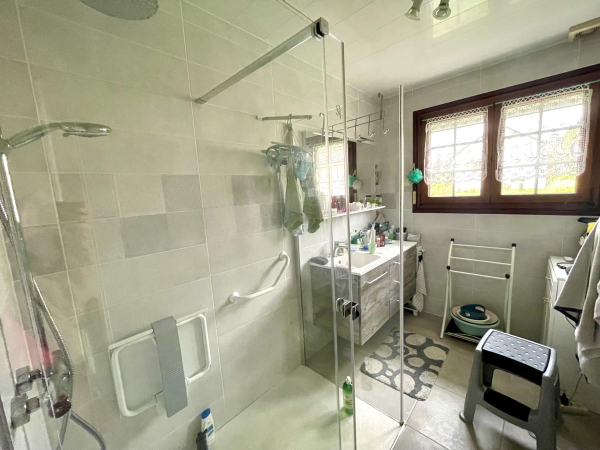 - Au RDC : entrée, salle à manger, salon avec cheminée insert, véranda, cuisine A/E, WC, 2 chambres, salle d’eau moderne avec douche à l’italienne.