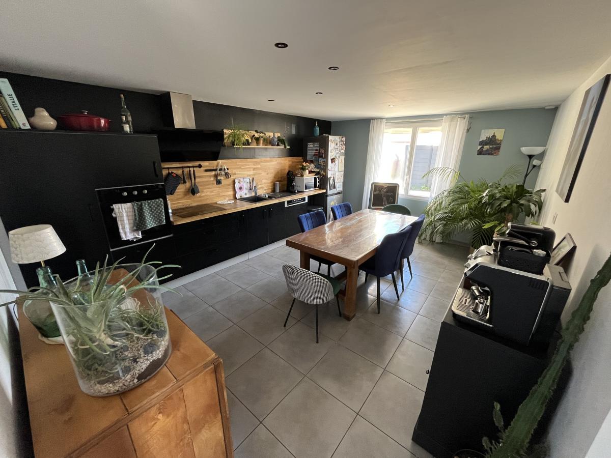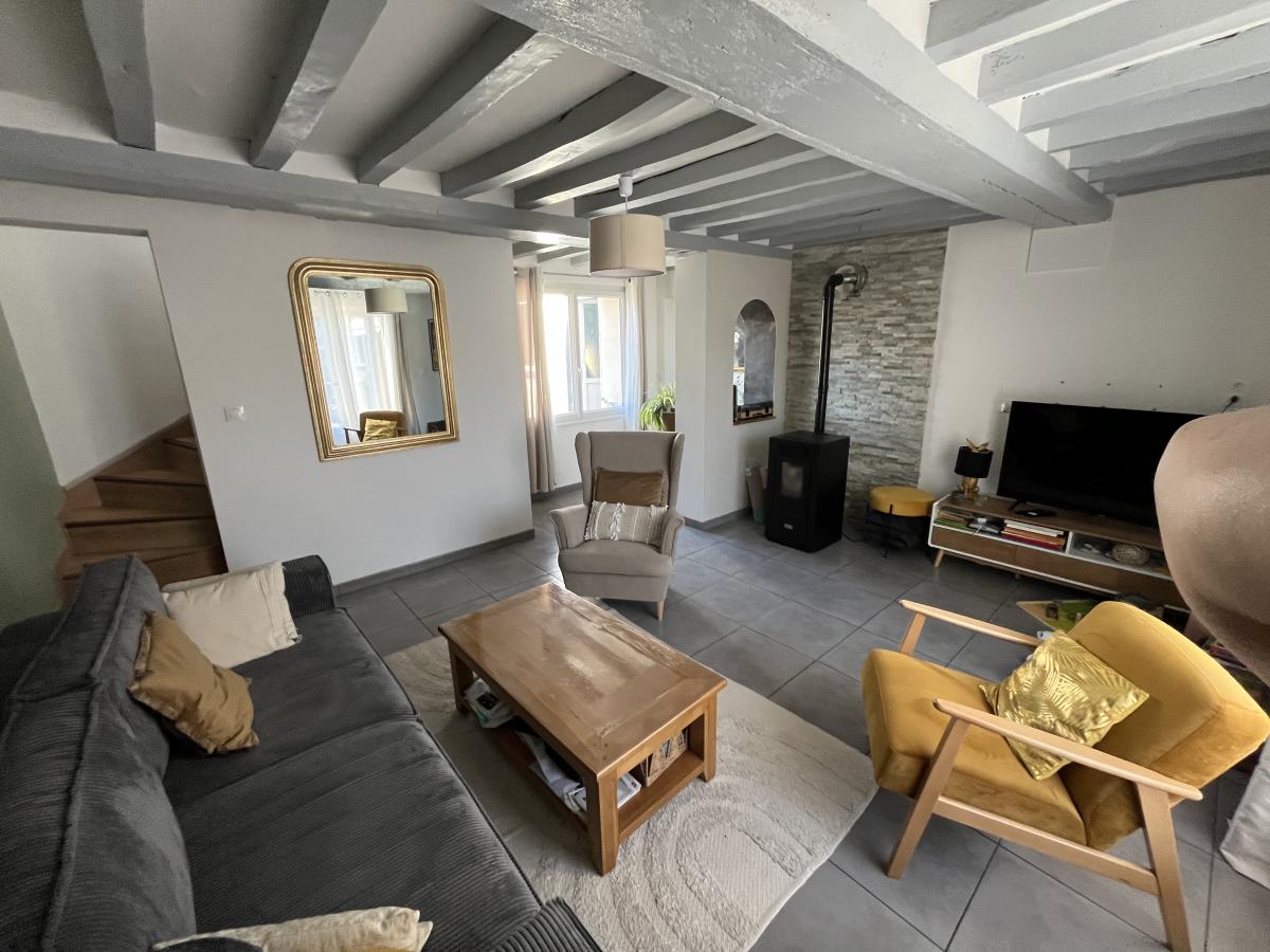 ✨ Au rez-de-chaussée : entrée accueillante, buanderie pratique, cuisine conviviale 🍳, salle d’eau avec WC 🚿, séjour chaleureux avec poêle à pellets 🔥.