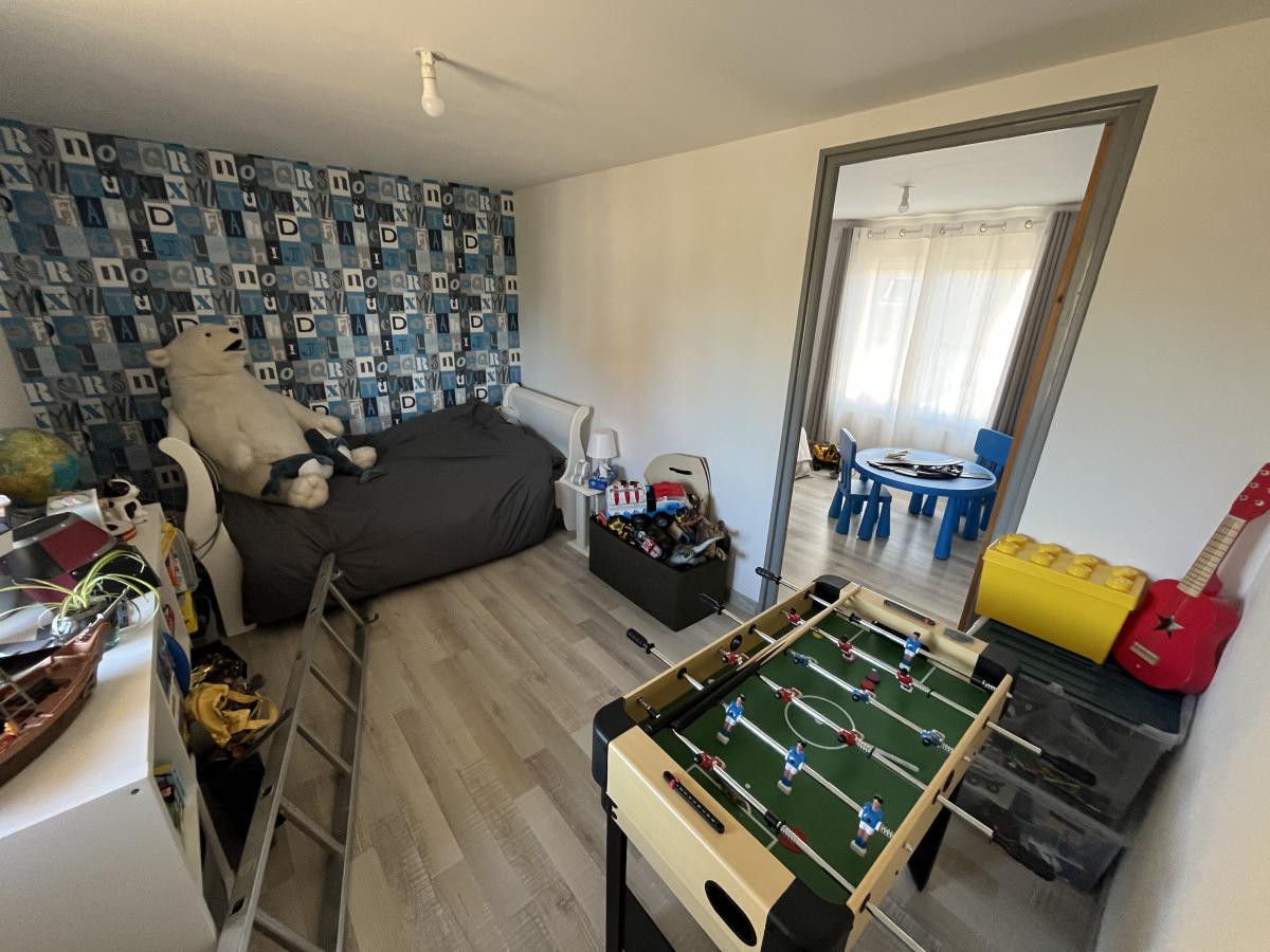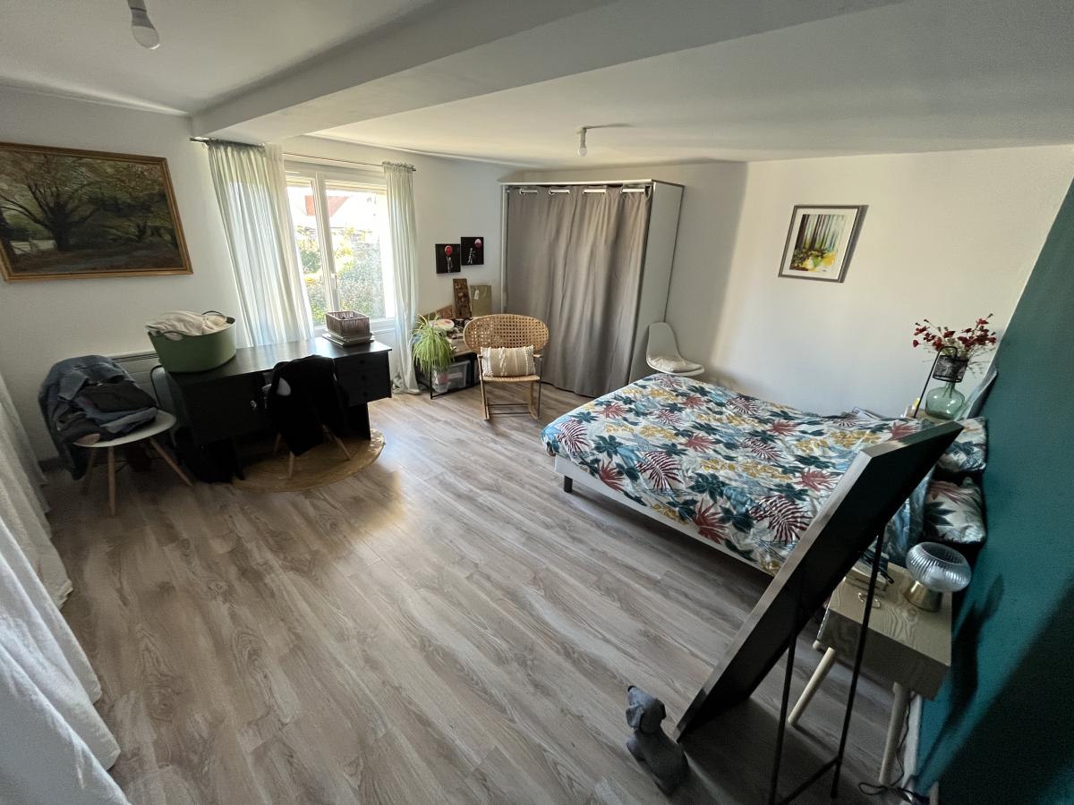 ✨ À l’étage : palier desservant une grande chambre 🛏️ et deux chambres en enfilade 🛌🛌.