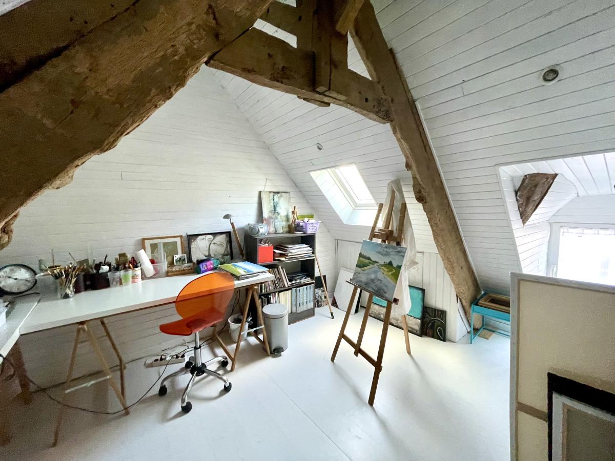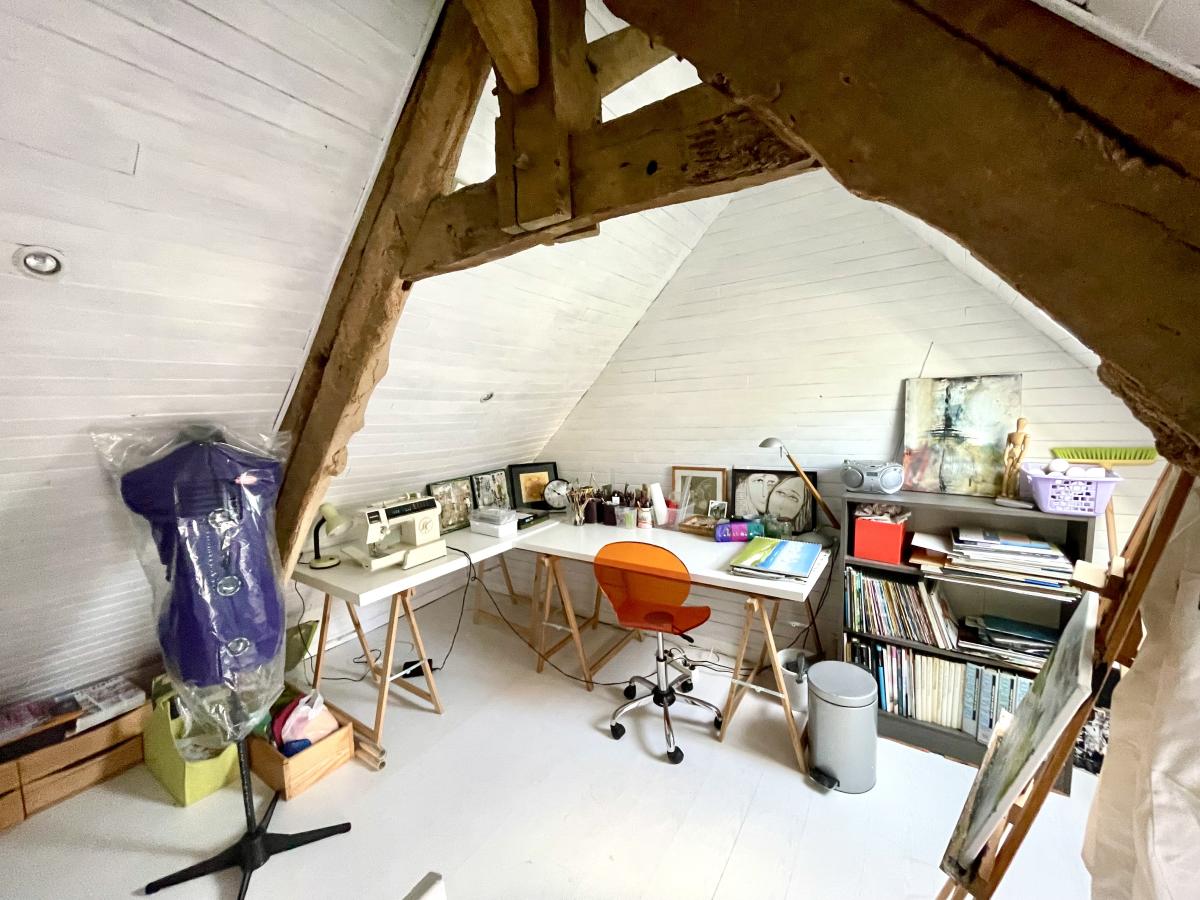 Au second étage, un atelier ou petite chambre ainsi qu’un grenier offrent un potentiel d’aménagement supplémentaire selon vos besoins (espace de travail, chambre, stockage…).
