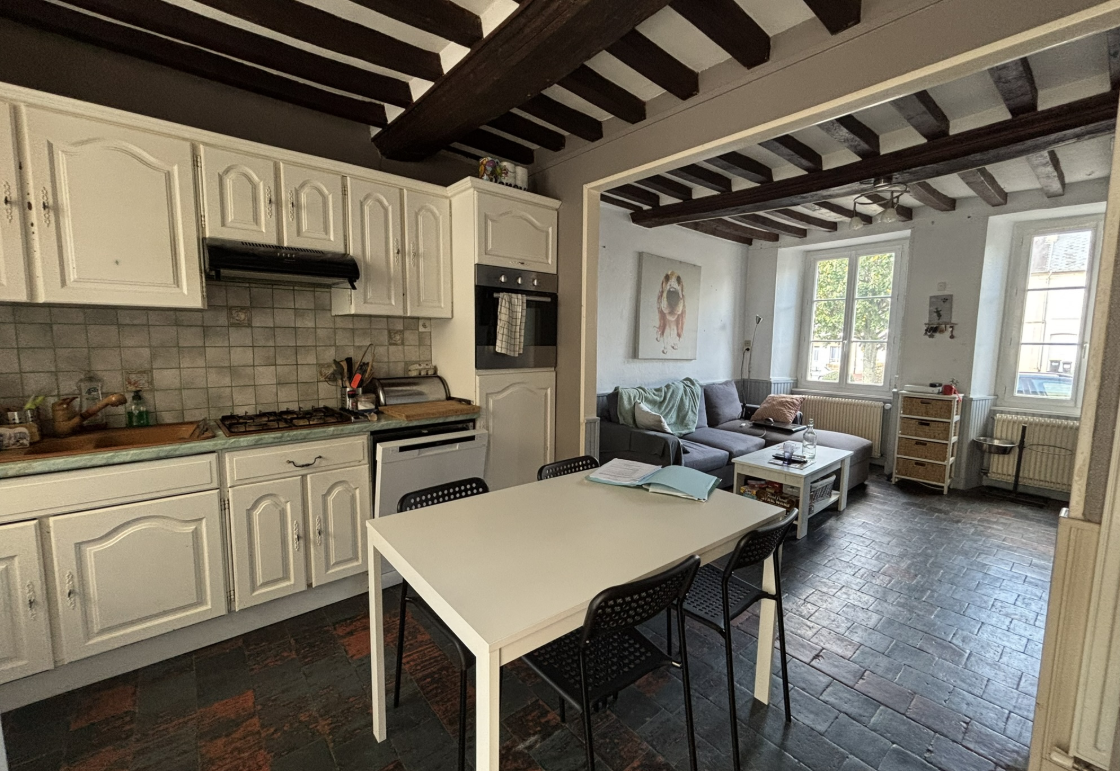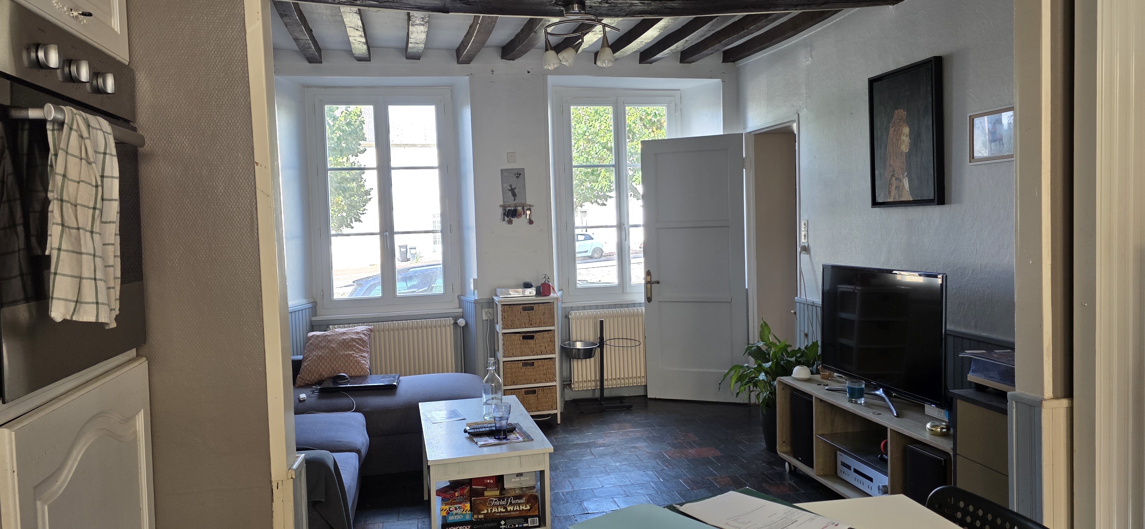 - Au rez-de-chaussée : une entrée , une salle à manger, une cuisine aménagée (ouverte sur la salle à manger), une salle d’eau avec w.c., une véranda donnant sur la cour commune.