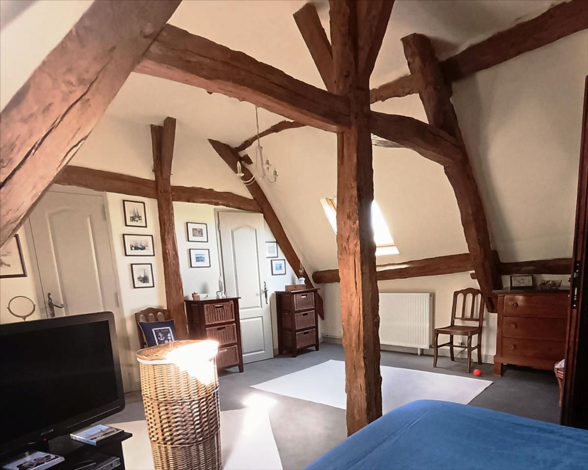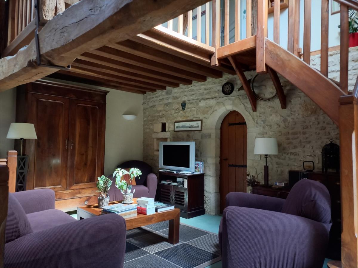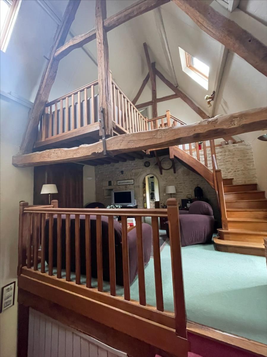 Une maison d'habitation d'une surface d'environ 256m² : Une cuisine aménagée (env 30m²) avec son four à pain, contigu à la salle à manger (env 20m²), arrière-cuisine/wc et chaufferie fioul. A l 'étage : un vaste salon (env52m²) avec sa cheminée de style en pierre de Caen, un salon mezzanine desservant une chambre ( env 25 m²), un bureau et salle de bains, wc.Au second : mezzanine distribuant 2 chambres, 3 dressing et salle de bains. Grenier aménageable en plus (env 86 m²).