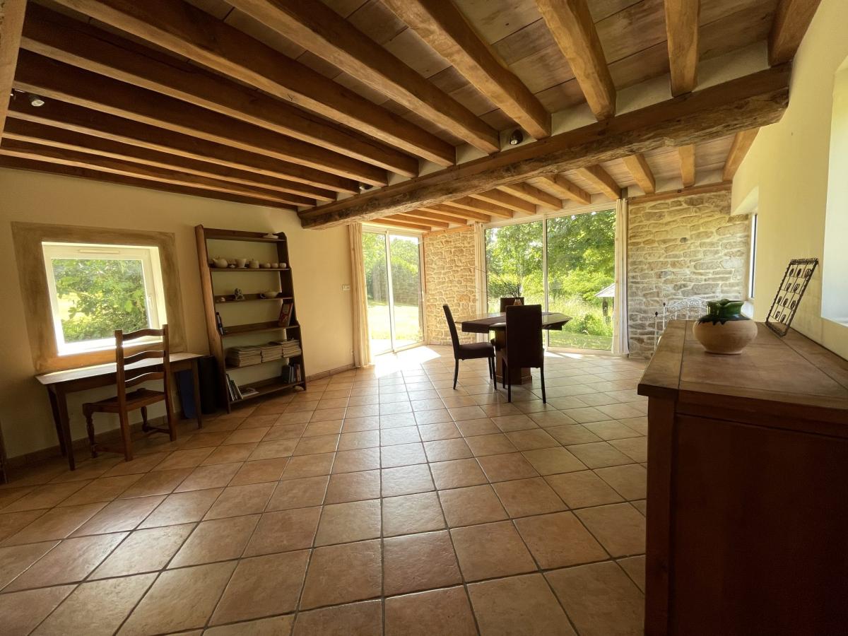 Jolie maison en colombages et pierres comprenant :