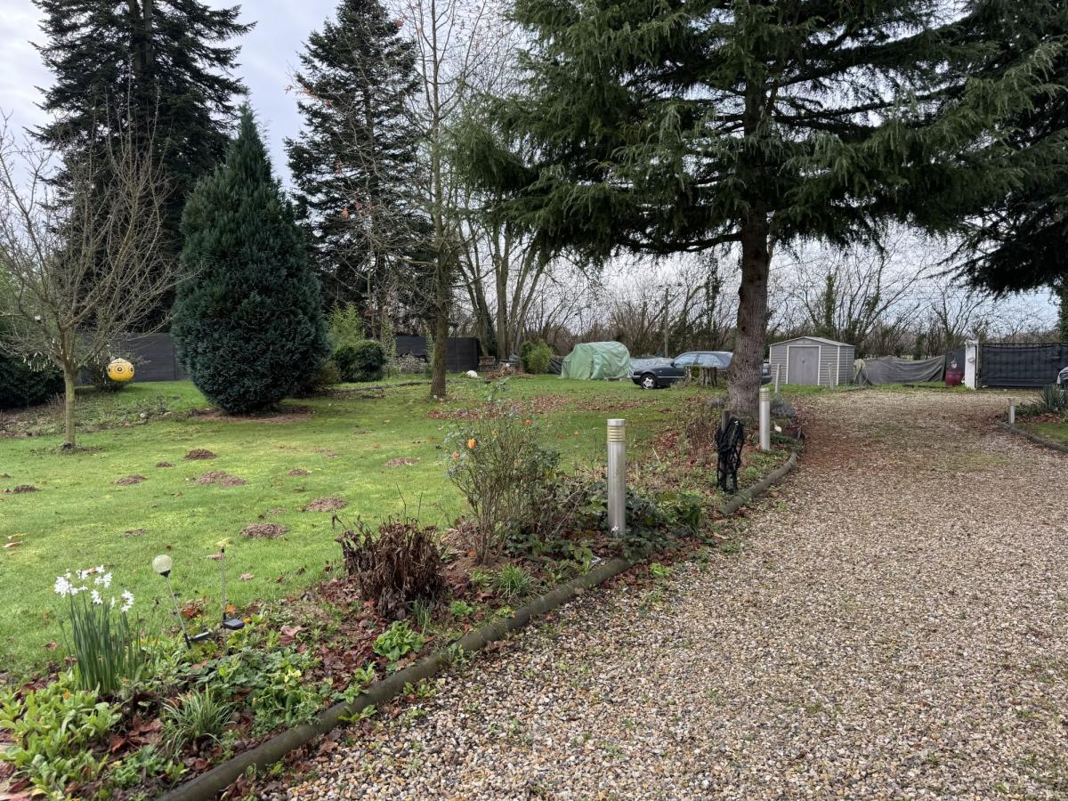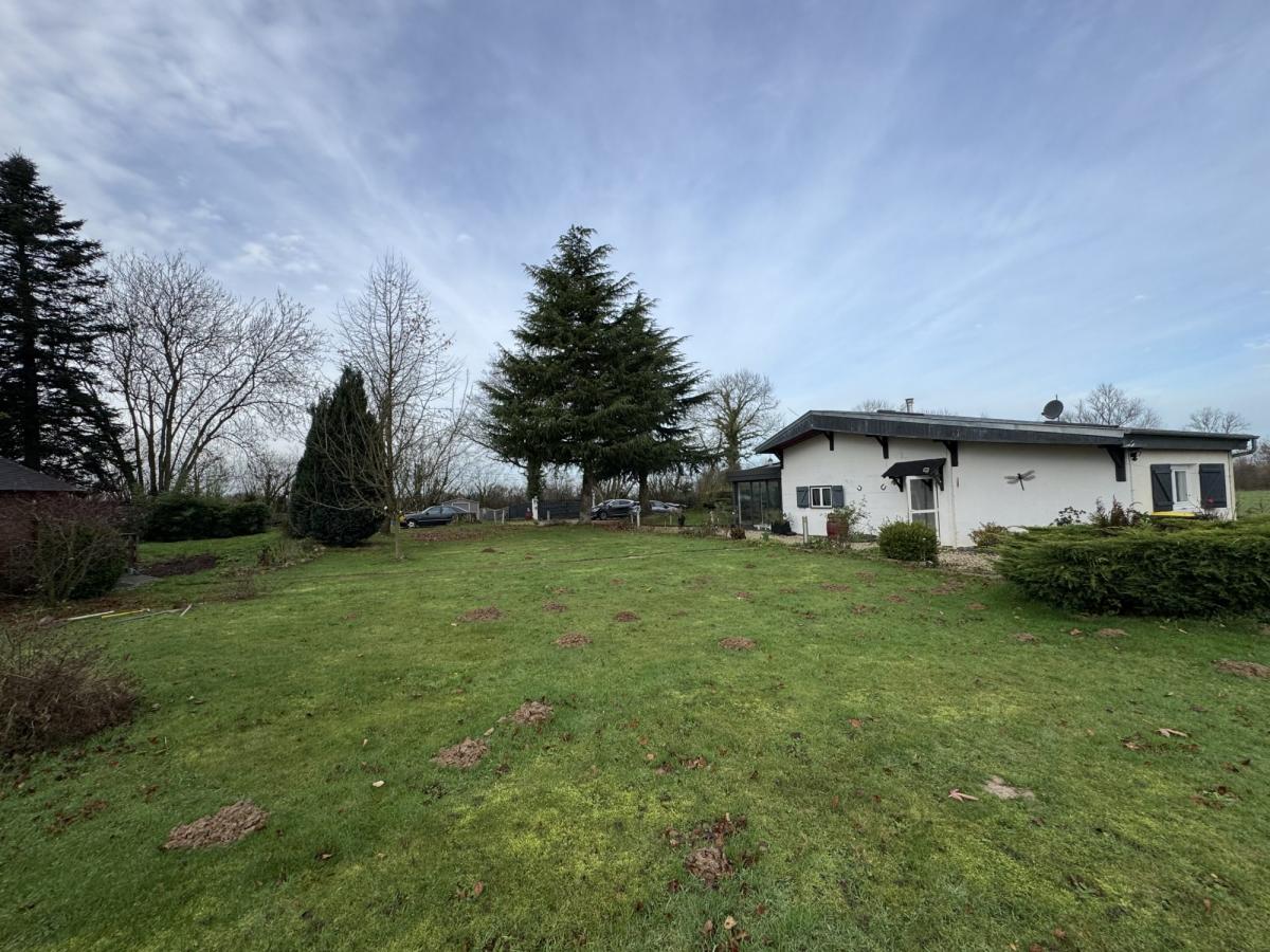 BEAUFOUR-DRUVAL Au calme Maison de 59m² comprenant: Pièce de vie avec cuisine ouverte, véranda, chambre avec salle d'eau et wc. A l'étage: mezzanine à usage de chambre Terrain de 2.000m² avec chalet