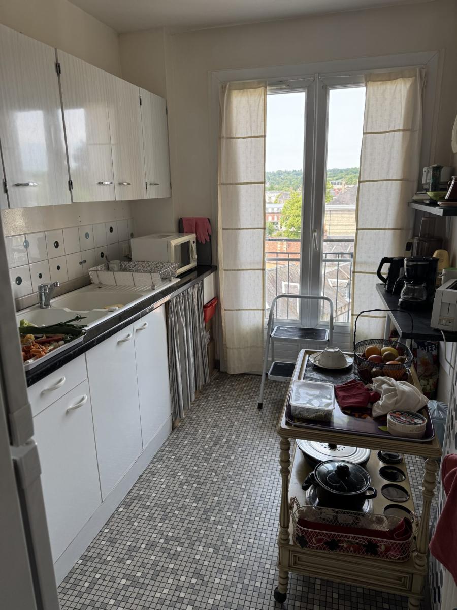 LISIEUX Proche basilique Idéal pour investir, appartement T3 de 62m², loué depuis 2011: 3ème étage avec ascenseur, comprenant: Entrée, séjour avec balcon filant, cuisine, 2 chambres, salle de bains et wc. Cave