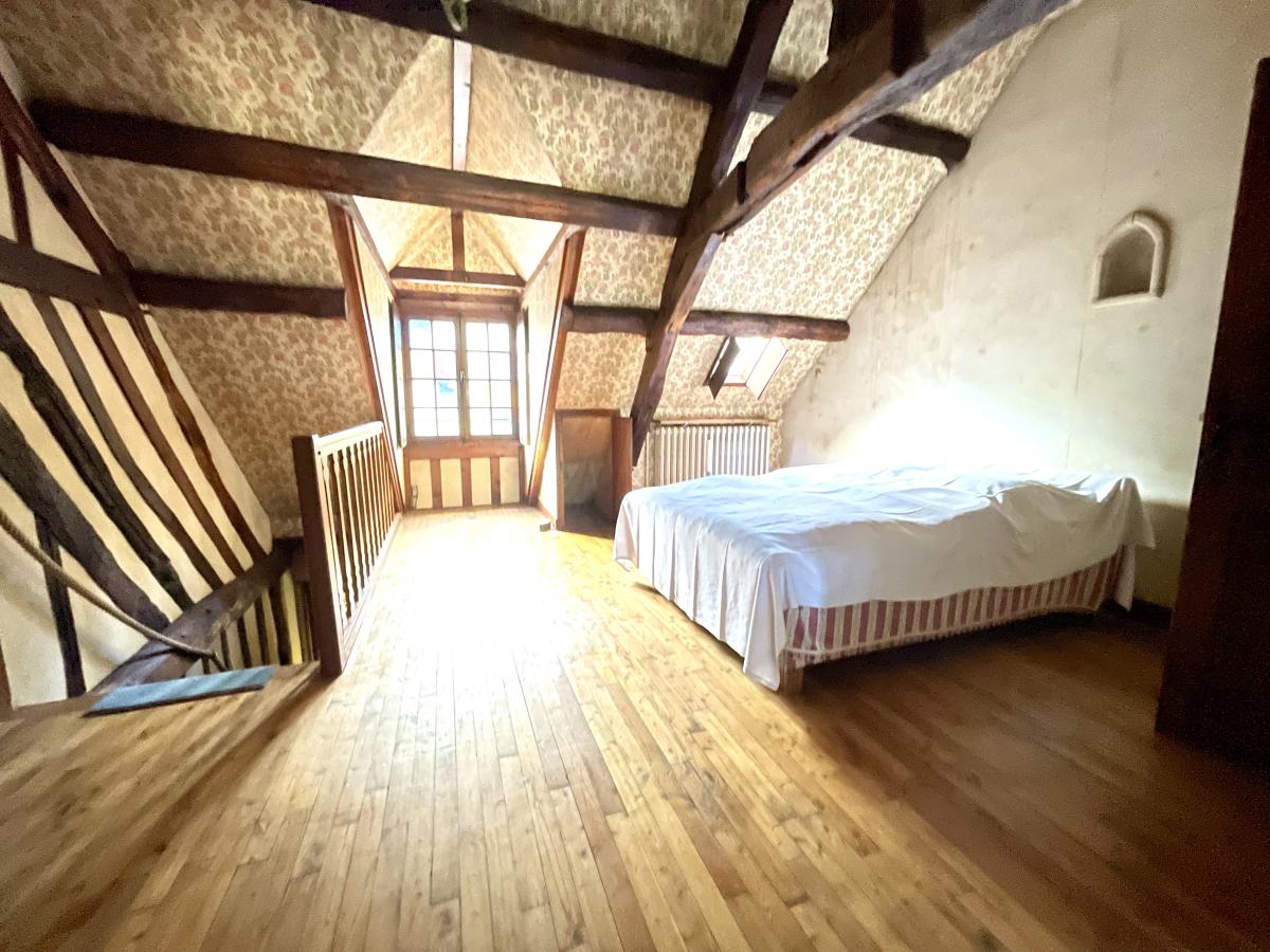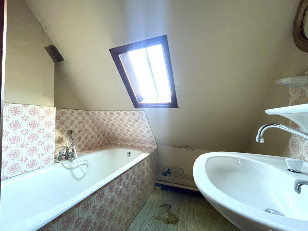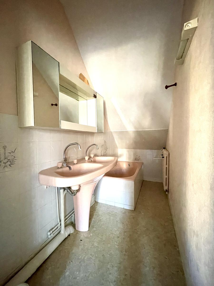 Au second étage : couloir desservant une petite chambre , wc , salle de bains et une grande chambre .