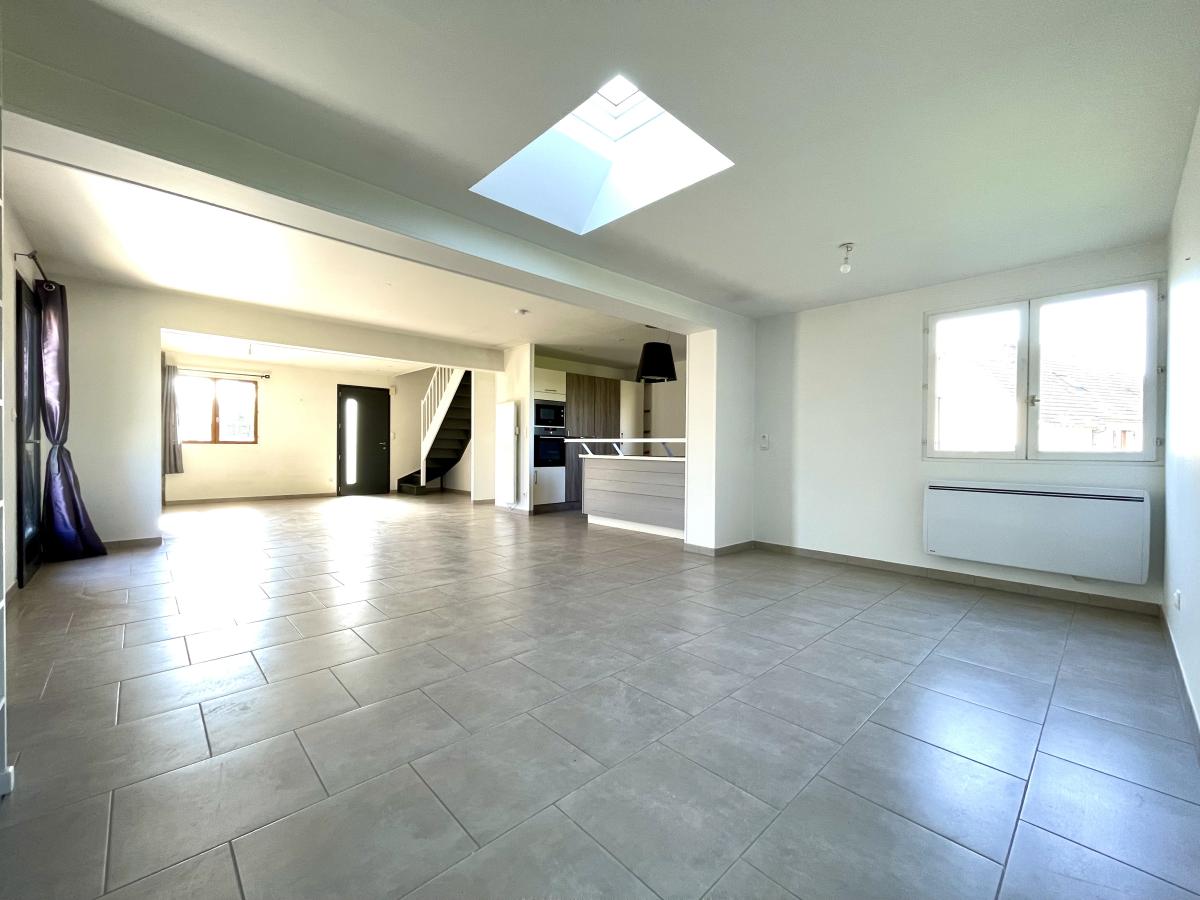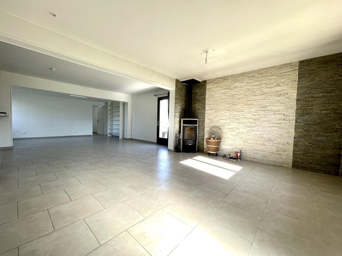 Au rez-de-chaussée : Beau séjour de 55 m² avec poêle à bois ouvert sur une cuisine aménagée et équipée complété d'une cellier , une grande chambre , une salle d'eau , wc et garage .