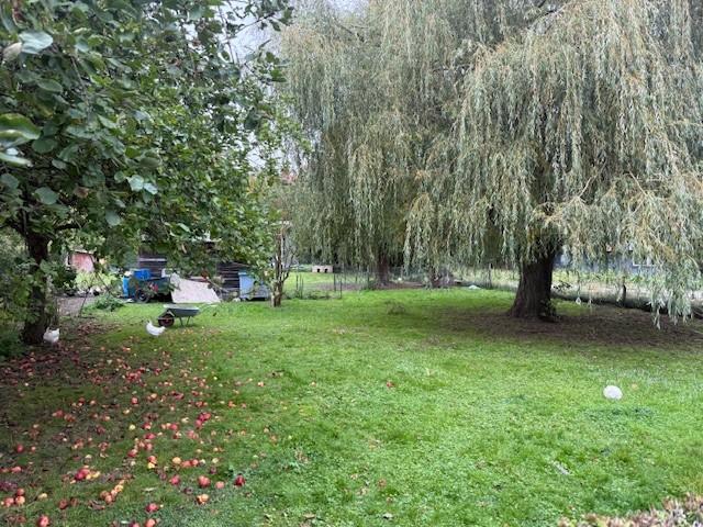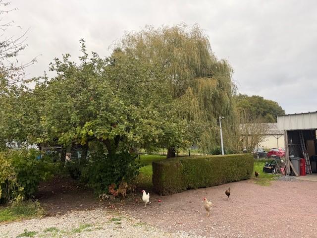 - Terrain attenant avec un bâtiment en tôles à usage d'abri de voiture et un bâtiment en bois à usage de remise, partie herbage édifié d'un bâtiment en bois.