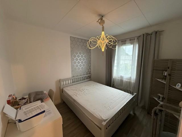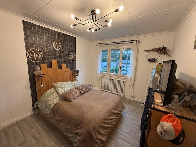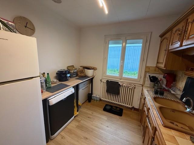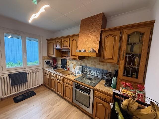 - Au rez-de-chaussée : une entrée avec placard, une cuisine aménagée, un séjour, un couloir desservant : WC, une salle de bains, deux chambres.