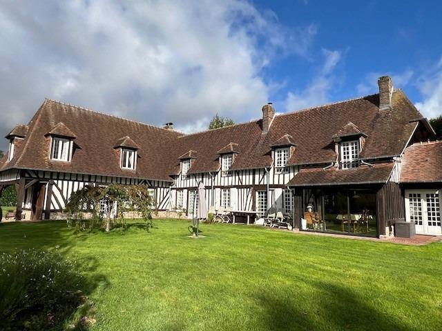 Une propriété comprenant : 1°) Une maison normande comprenant : - Au rez-de-chaussée : salle à manger, cuisine aménagée et équipée, chauffage central fuel, arrière-cuisine, buanderie, salon-salle à manger avec cheminée et poêle à bois, autre grand salon avec cheminée pierre, chambre, wc, salle d’eau. - A l’étage : 1ère partie : palier, couloir, salle de bains avec wc, salle d’eau et wc, 4 chambres. 2ème partie : une chambre, chambre avec salle d’eau, autre chambre avec salle de bains douche et wc et baignoire. 2°) Dépendance à usage de garage, atelier, chaufferie fuel, local piscine avec à l’étage salle d’eau et wc, 2 chambres, placards. 3°) Piscine 10x5 chauffée. 4°) Une maisonnette comprenant : Terrasse séjour avec cheminée Etage : salle de bains et wc. Dépendance box à chevaux ou atelier. L’ensemble sur 03ha.33a.22ca.Les informations sur les risques auxquels ce bien est exposé sont disponibles sur le site Géorisques : www. georisques. gouv. frConsultez nos tarifs : https://www.rouault-orbec.notaires.fr/tarif-honoraires.htmlMontant maximum des honoraires pratiqués par l'Office.