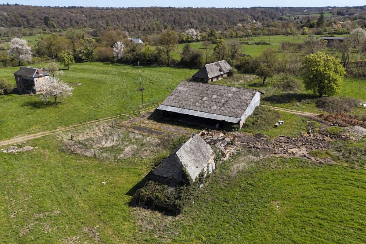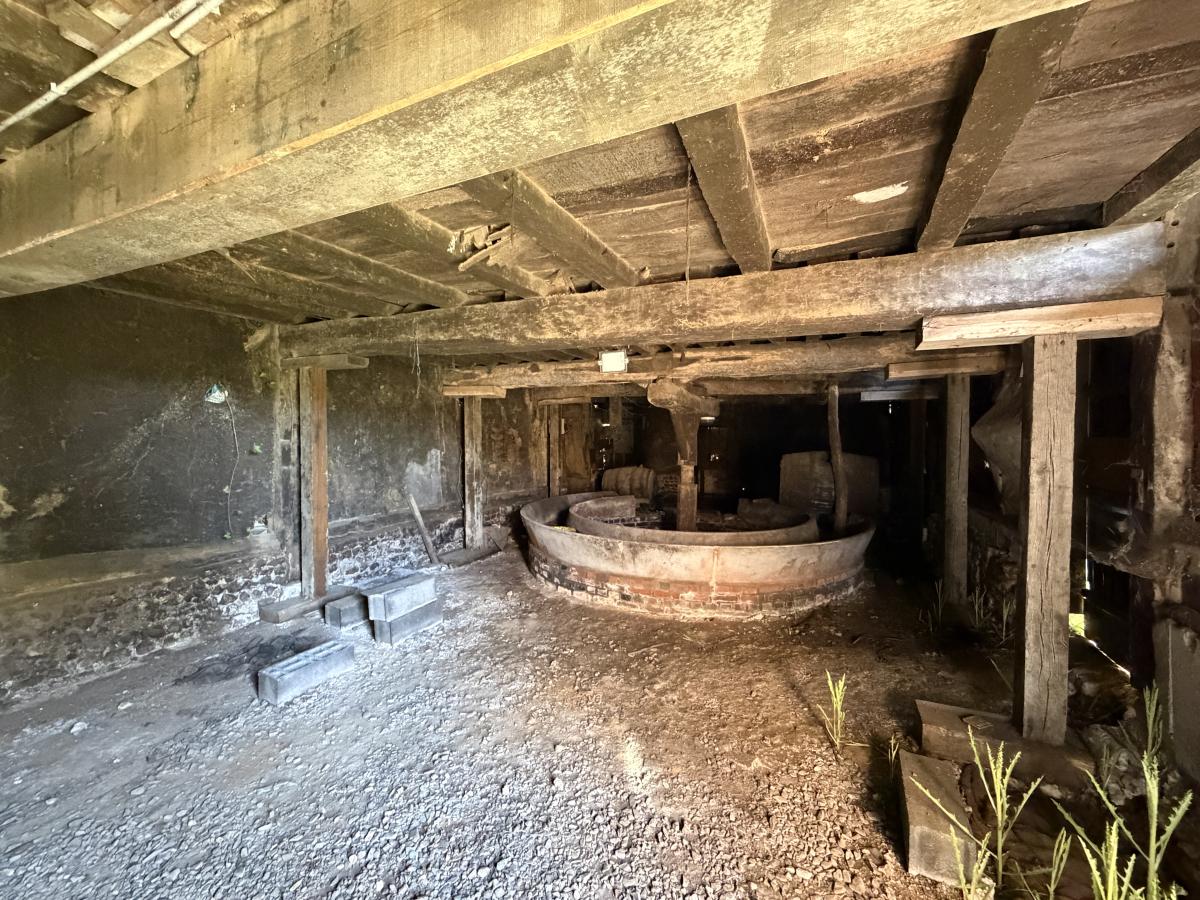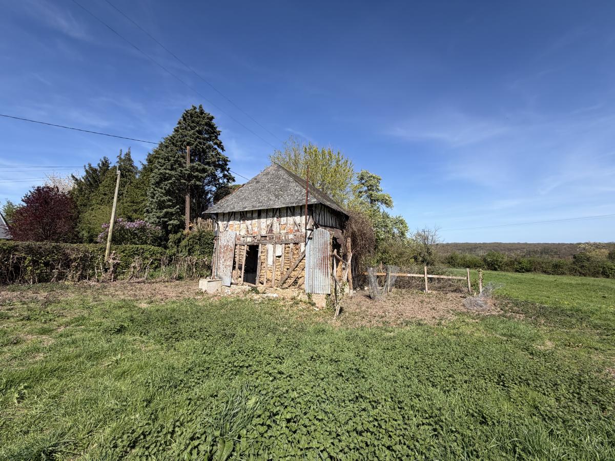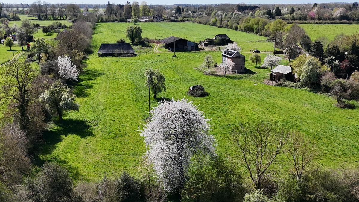 Édifiée sur une première unité foncière d’environ 5 hectares d’un seul tenant, elle se compose d’une maison principale d’environ 200 m² entièrement à rénover, d’un ancien pressoir, ainsi que de deux autres bâtisses également à réhabiliter, offrant de nombreuses possibilités d’aménagement.