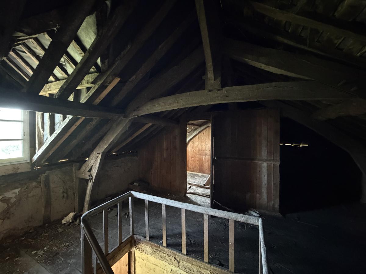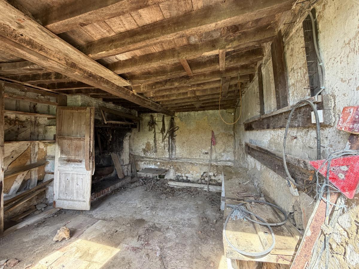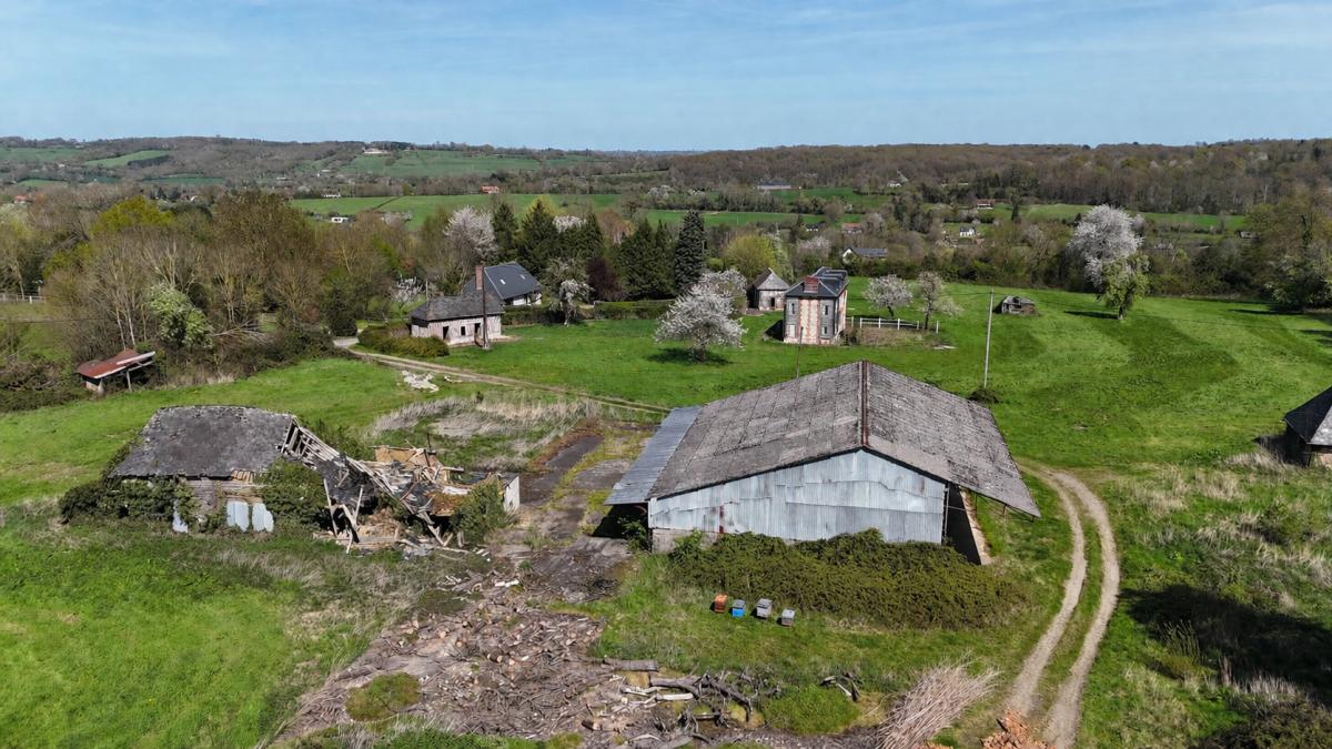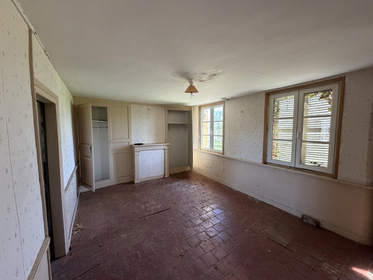 Édifiée sur une première unité foncière d’environ 5 hectares d’un seul tenant, elle se compose d’une maison principale d’environ 200 m² entièrement à rénover, d’un ancien pressoir, ainsi que de deux autres bâtisses également à réhabiliter, offrant de nombreuses possibilités d’aménagement.