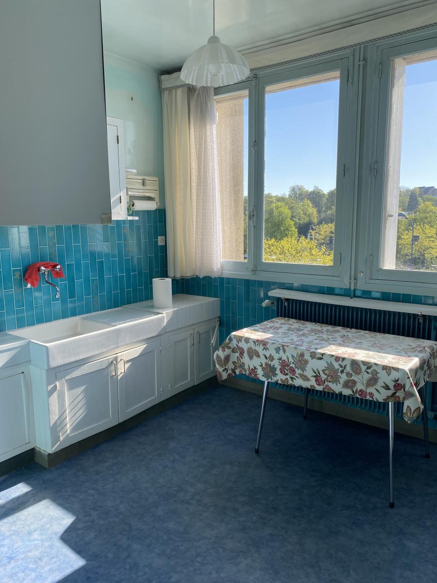 Situé en centre-ville, dans une co-propriété avec syndic, UN APPARTEMENT (S.H. 79.05 m²) situé au 4ème étage AVEC VUE, entièrement à rénover, comprenant :