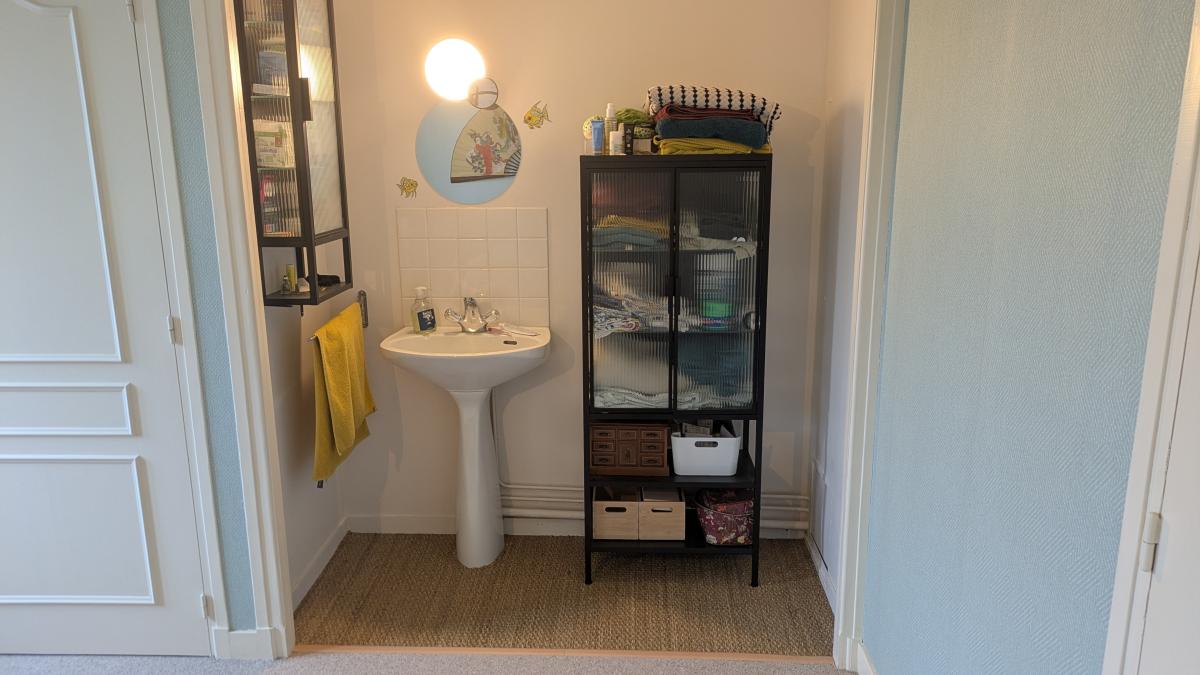 - au second étage : un vestibule et une chambre avec placard, et un grenier aménageable.