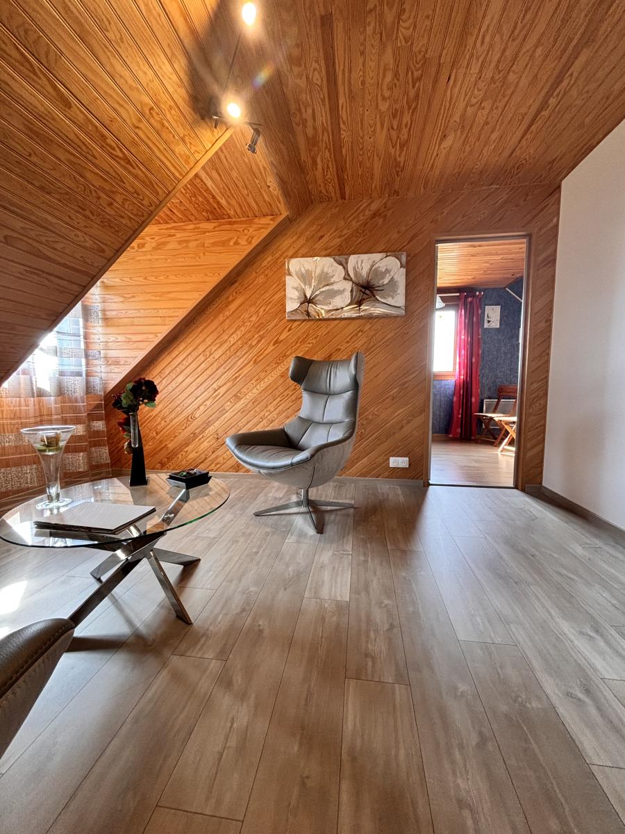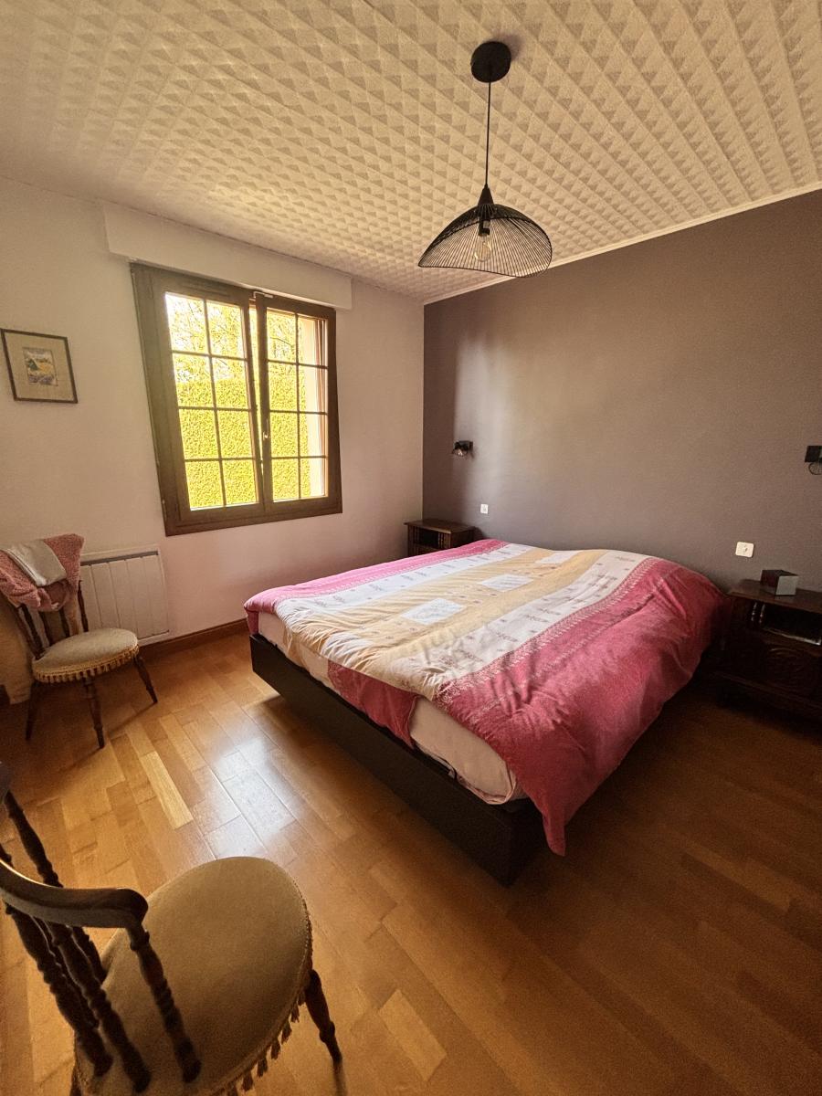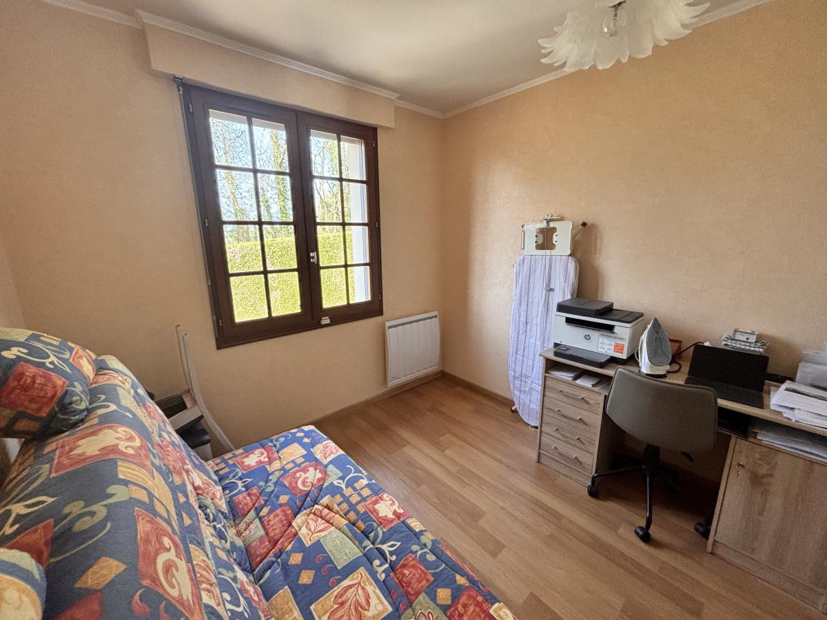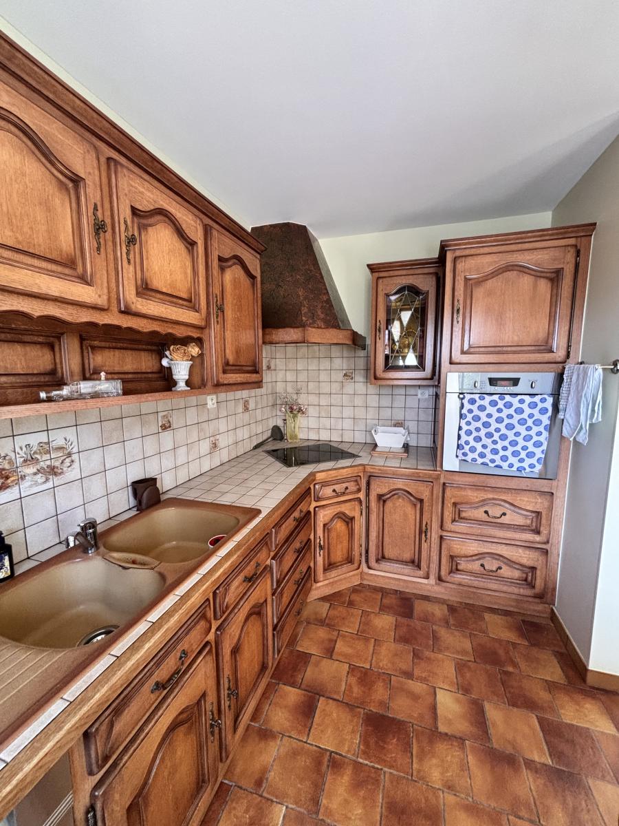 Au Rdc: Entrée, cuisine indépendante A/E, pièce à vivre avec poêle à bois, deux chambres, salle de bains + douche et wc