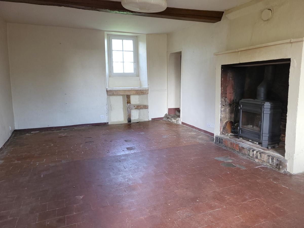Au rez-de-chaussée : entrée, séjour-salon avec poêle à bois, cuisine, salle d'eau avec wc