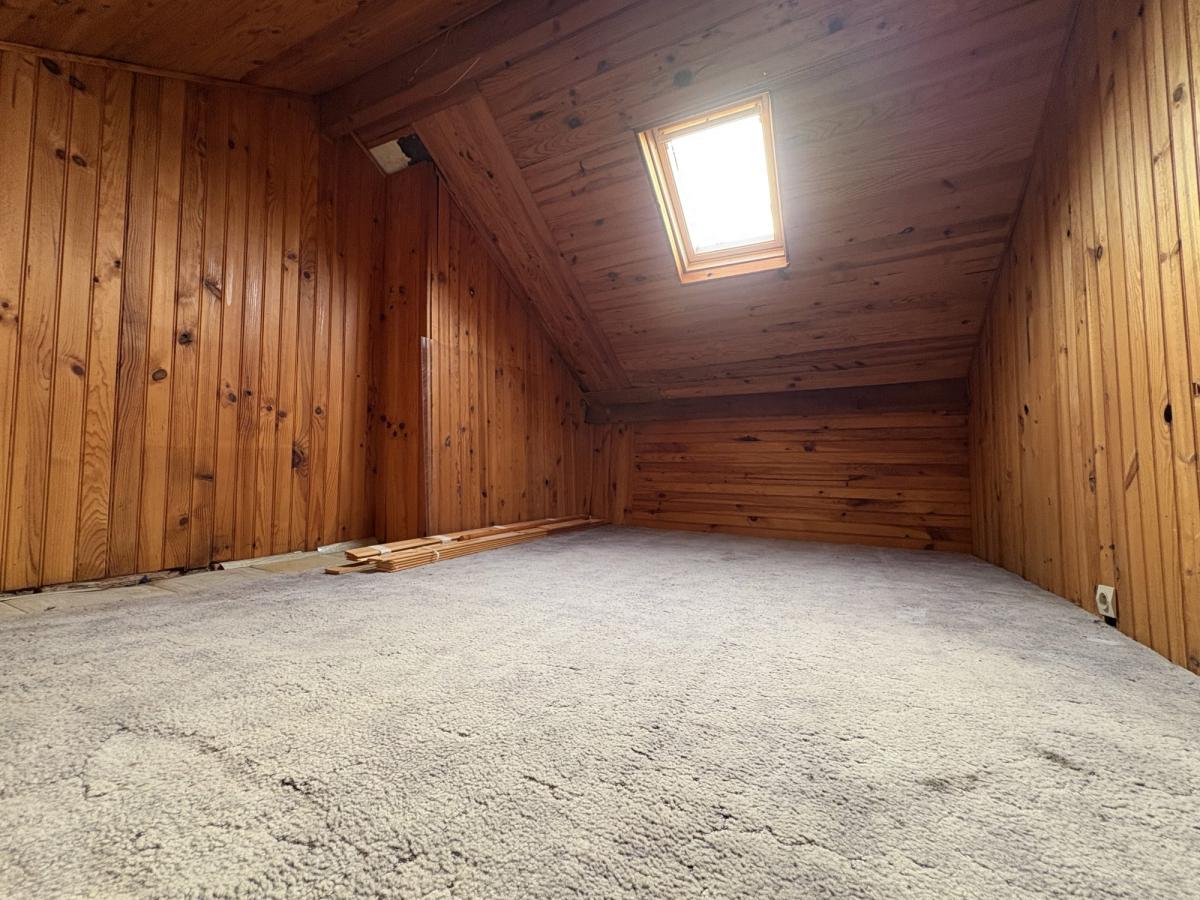 Au deuxième étage : une chambre mansardée lambrissée et un grenier