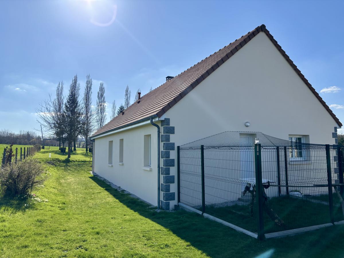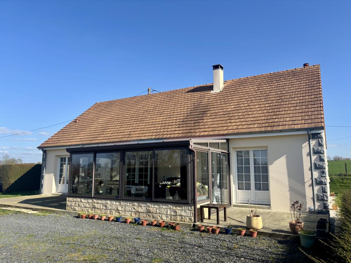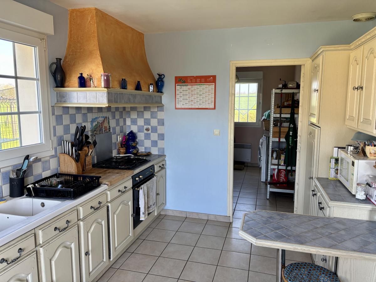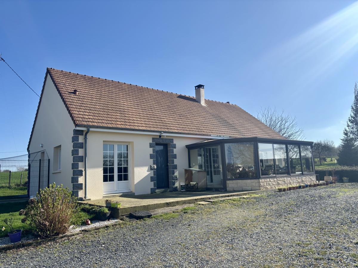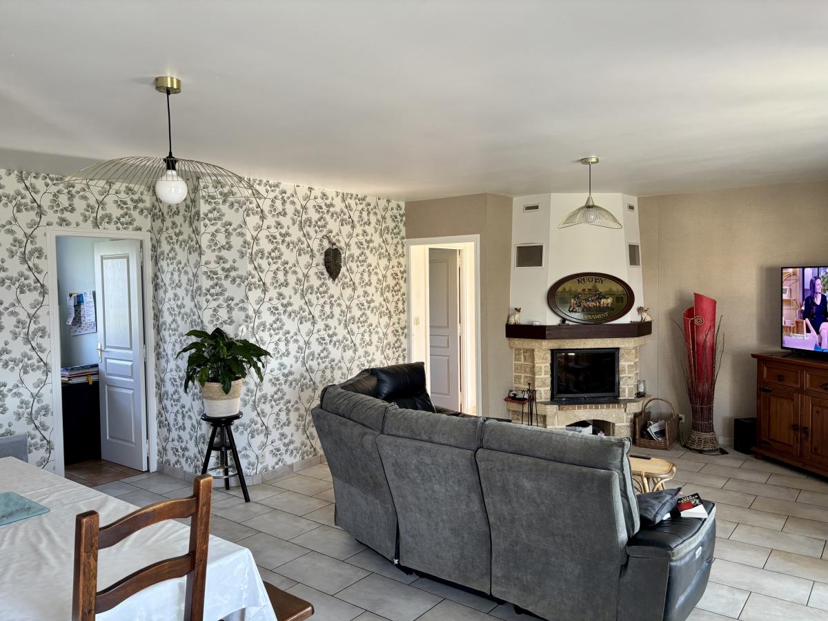 Maison individuelle de plain-pied construite en 2001, développant une surface habitable d’environ 107 m², comprenant : un vaste séjour/salon avec cheminée insert, une cuisine (à moderniser), trois belles chambres, une salle de bains récemment rénovée (2025), sanitaires et pièces de service.
