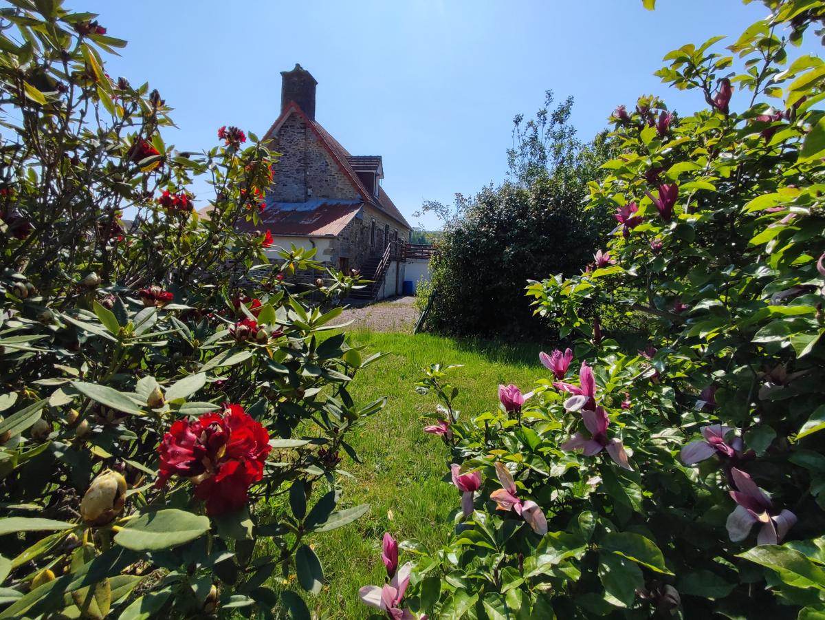 - A l’étage : d’une entrée, d’un séjour avec cheminée en granit, d’une cuisine séparée et semi-équipée, de trois chambres, d’une salle d’eau et d’un WC ;