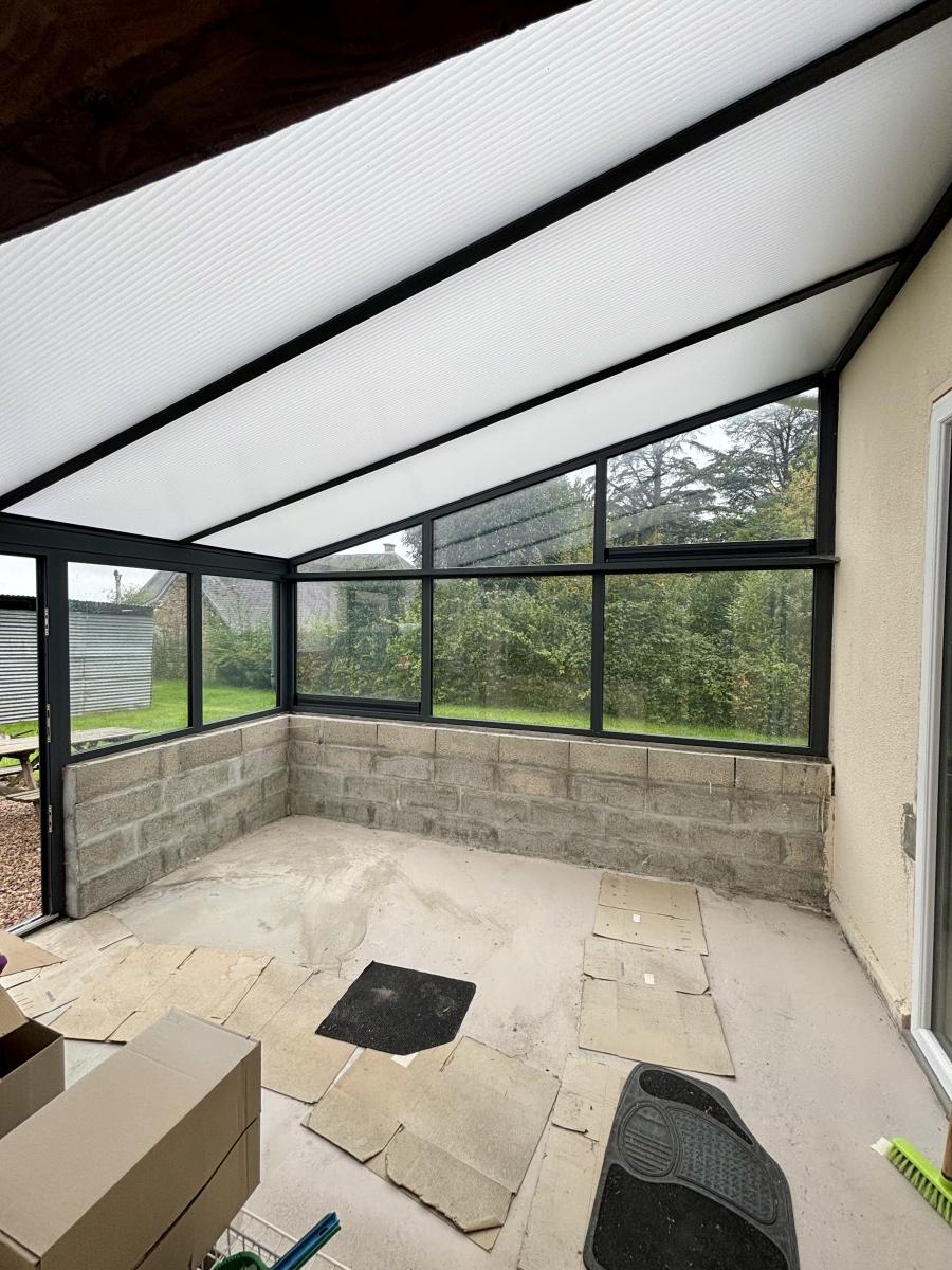 Au rez-de-chaussée : entrée par une véranda, pièce de vie avec cuisine ouverte, salon, salle d’eau et WC.