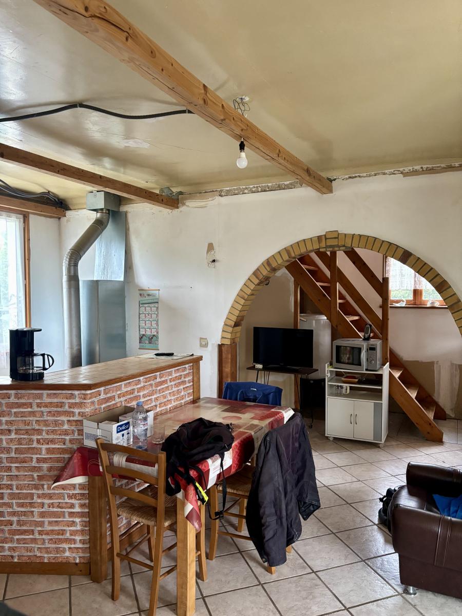 Sur l’axe Vire – Villers-Bocage, découvrez cette charmante maison à rénover offrant environ 65 m² habitables et composée comme suit :