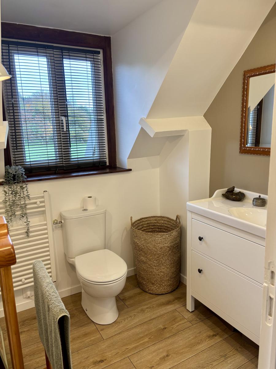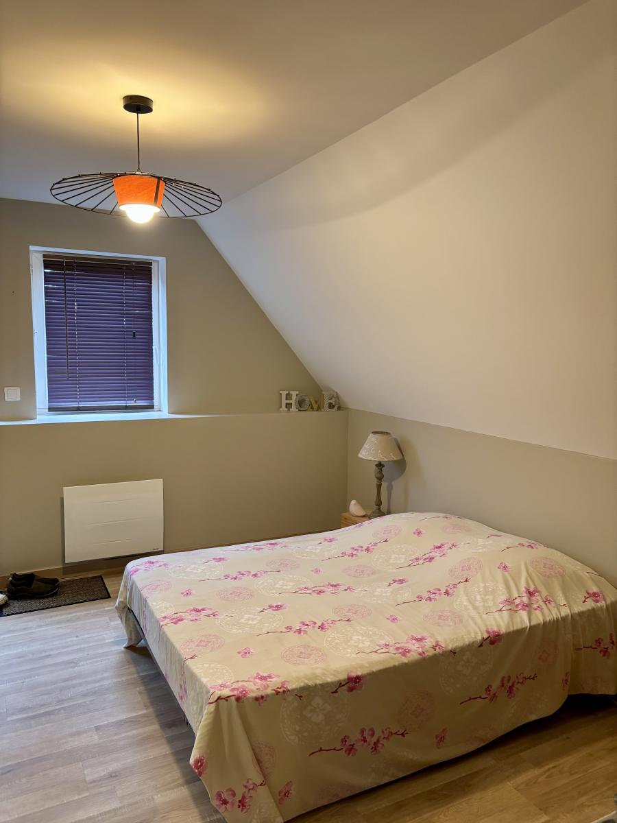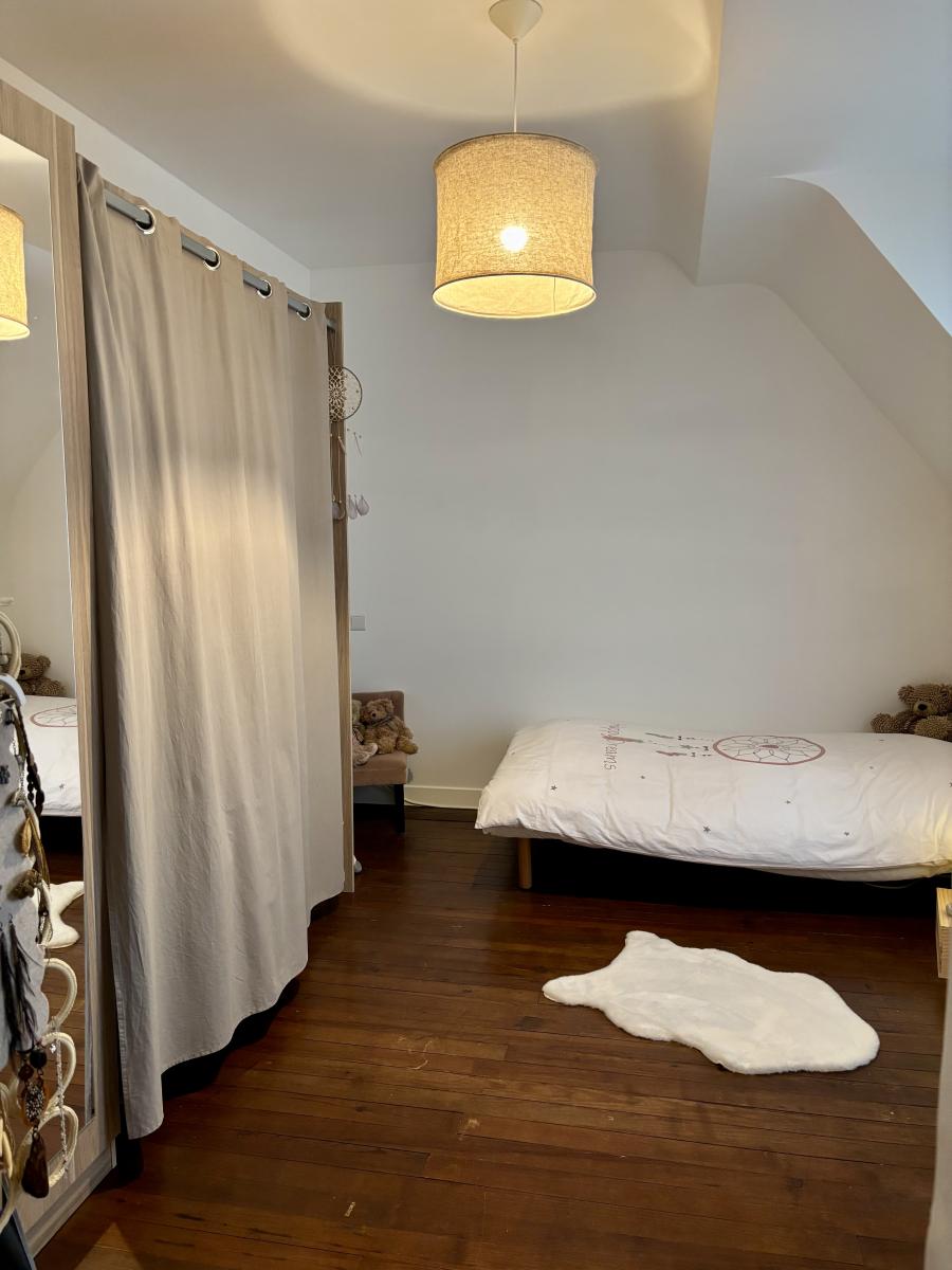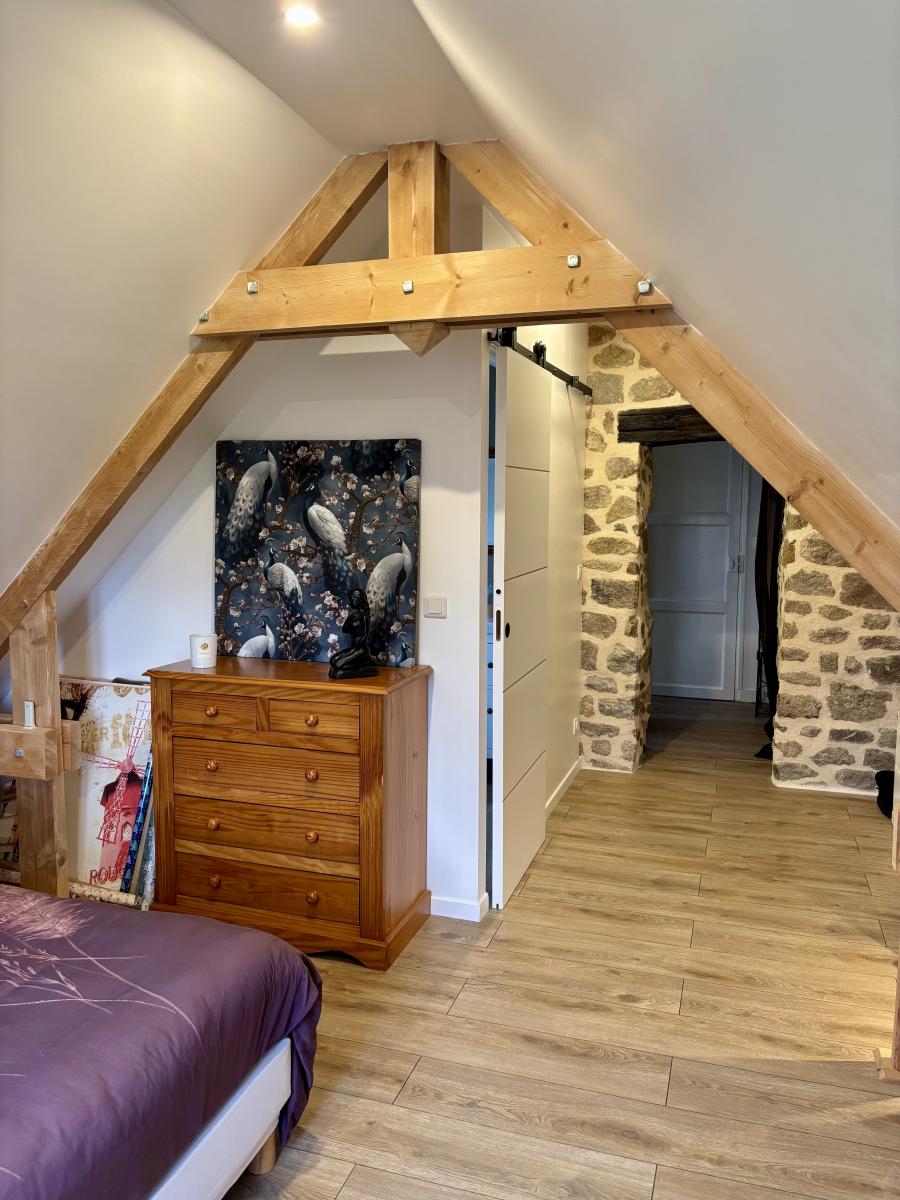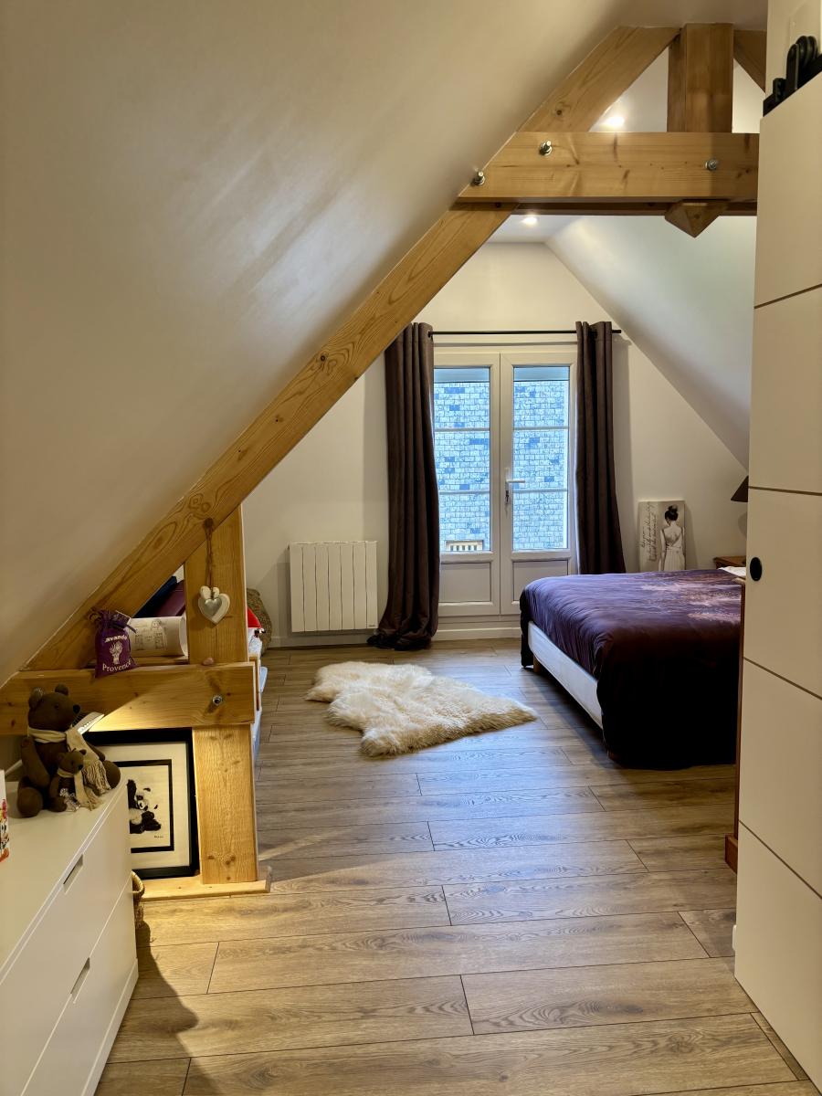 À l’étage, se trouvent trois chambres, dont une disposant d’une salle d’eau privative.