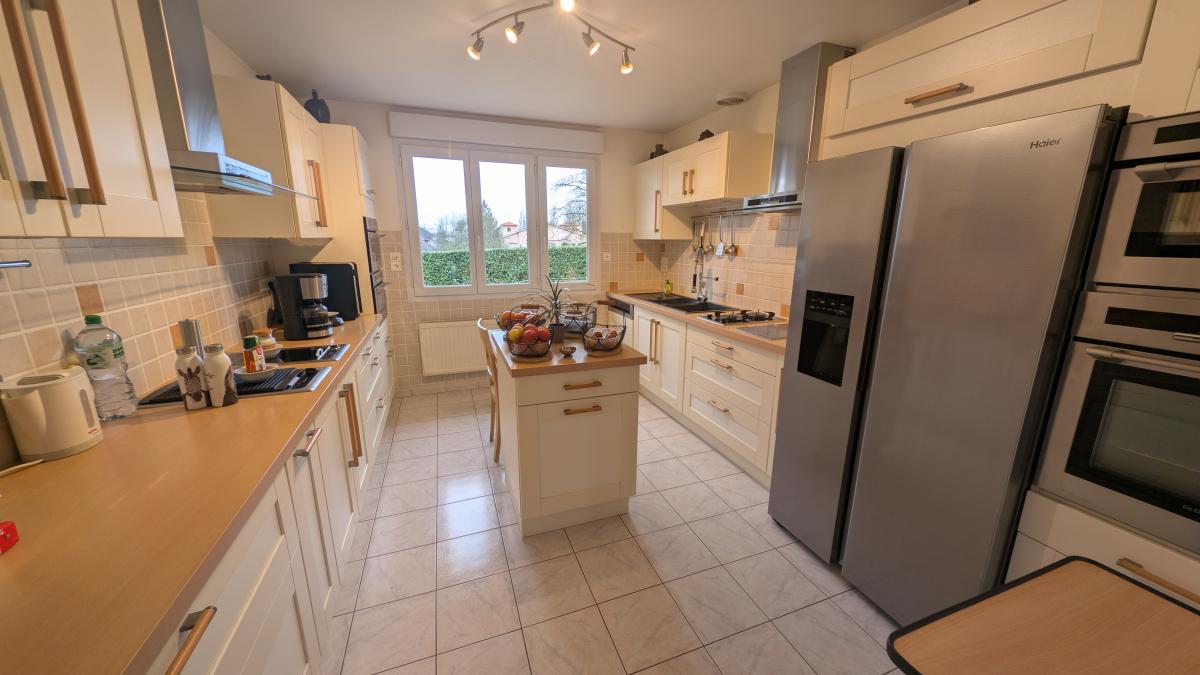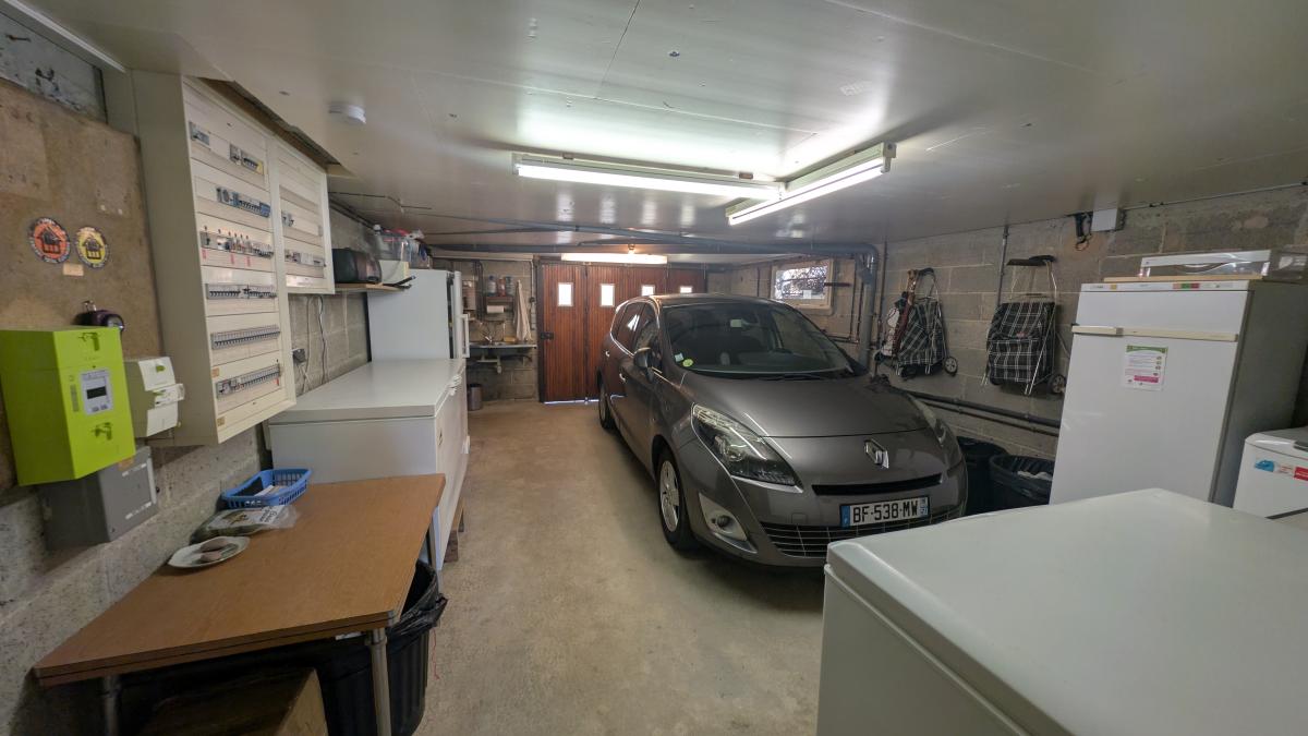 Maison construite en 1976 comprenant : au sous-sol : garage, atelier, cave, pièce et cellier. au rez-de-chaussée : entrée avec placards, séjour avec insert, cuisine aménagée/équipée, couloir desservant 4 chambres, salle d'eau, wc. au 2ème étage : grenier. Garage indépendant, appentis, abris jardin. Cour gravillonnée et jardin clos.