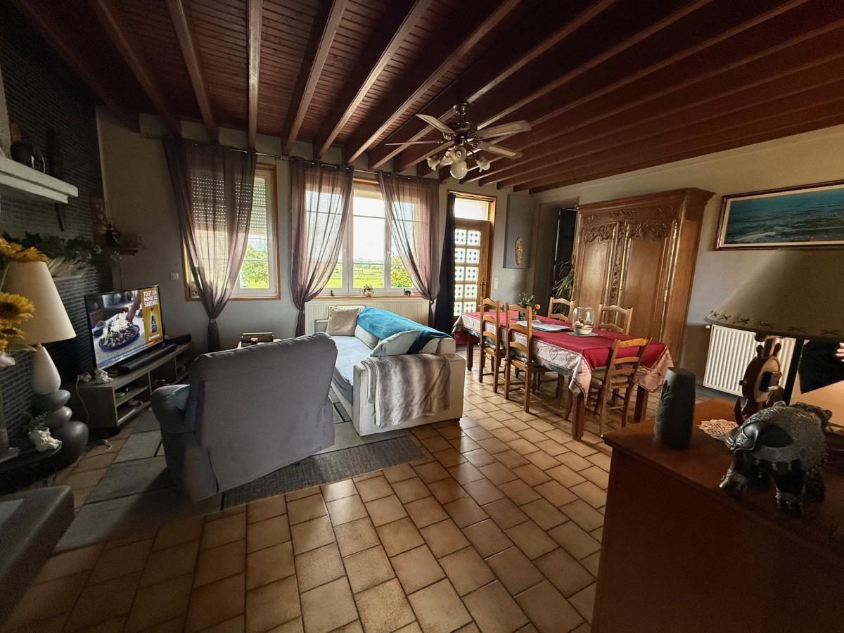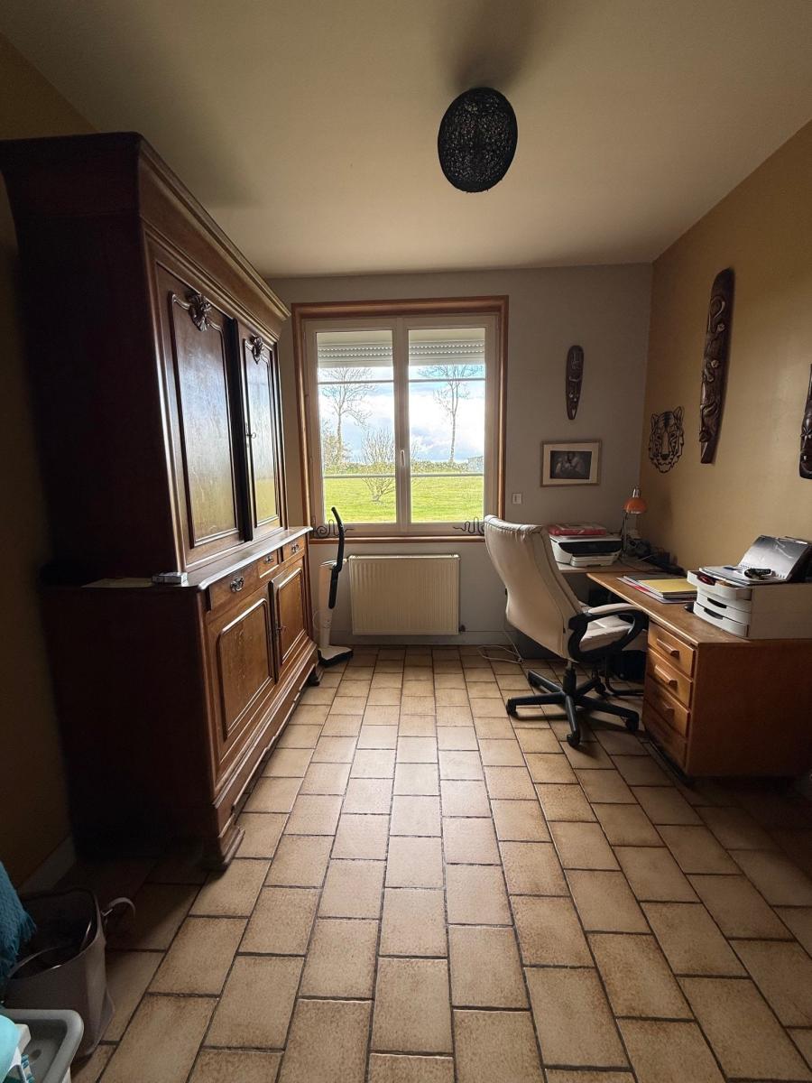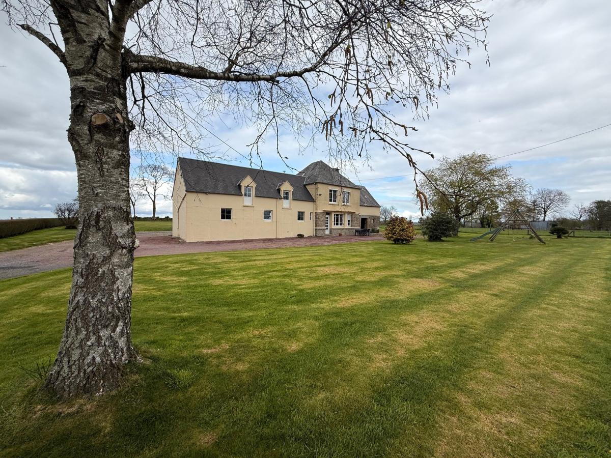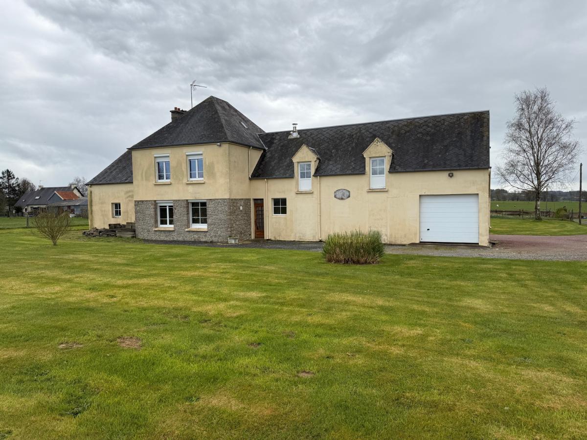 Entre Villedieu et Percy, dans hameau calme et agréable, Maison, comprenant : Rez-de-chaussée : entrée sur séjour salon avec insert, cuisine aménagée et équipée, WC, un bureau ; Etage : palier, trois chambres, salle de bains et WC. Grenier. A la suite : cave, atelier et grand garage. Grenier sur l'ensemble. Cour, jardin et terrain autour.