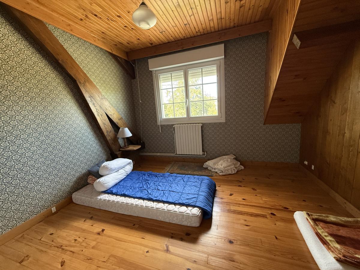 à l'étage: palier desservant deux chambres et deux greniers (possibilité de créer salle d'eau et autre chambre côté balcon ).