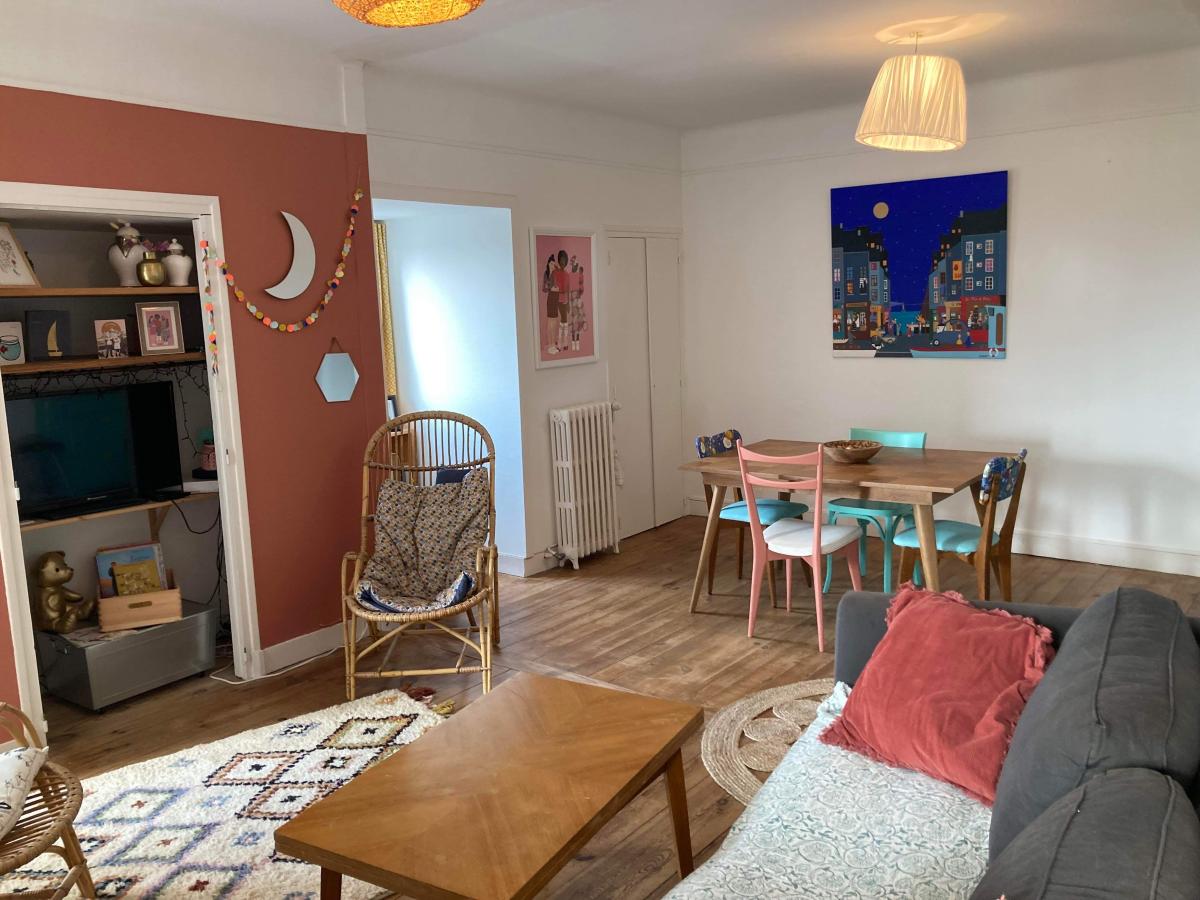 En centre-ville, un bel appartement de 70 m², lumineux, situé au 4e étage comprenant : Entrée, couloir, cuisine, séjour, salle d'eau, wc, deux chambres avec placards. Caves.