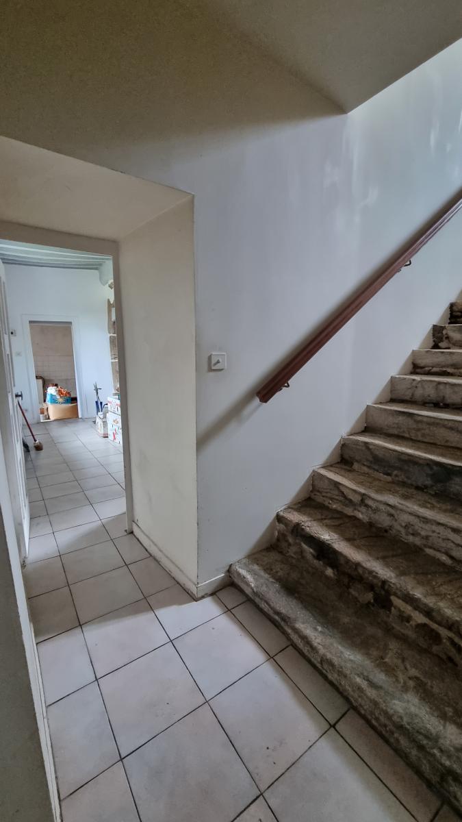 Escalier en pierre menant à l'étage : une grande chambre, un bureau.