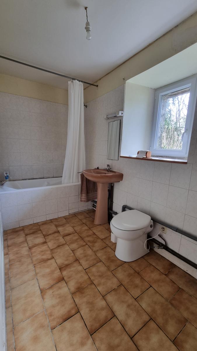Au rez-de-chaussée : entrée dans une cuisine, un séjour avec une grande cheminée, une salle de bains, wc.