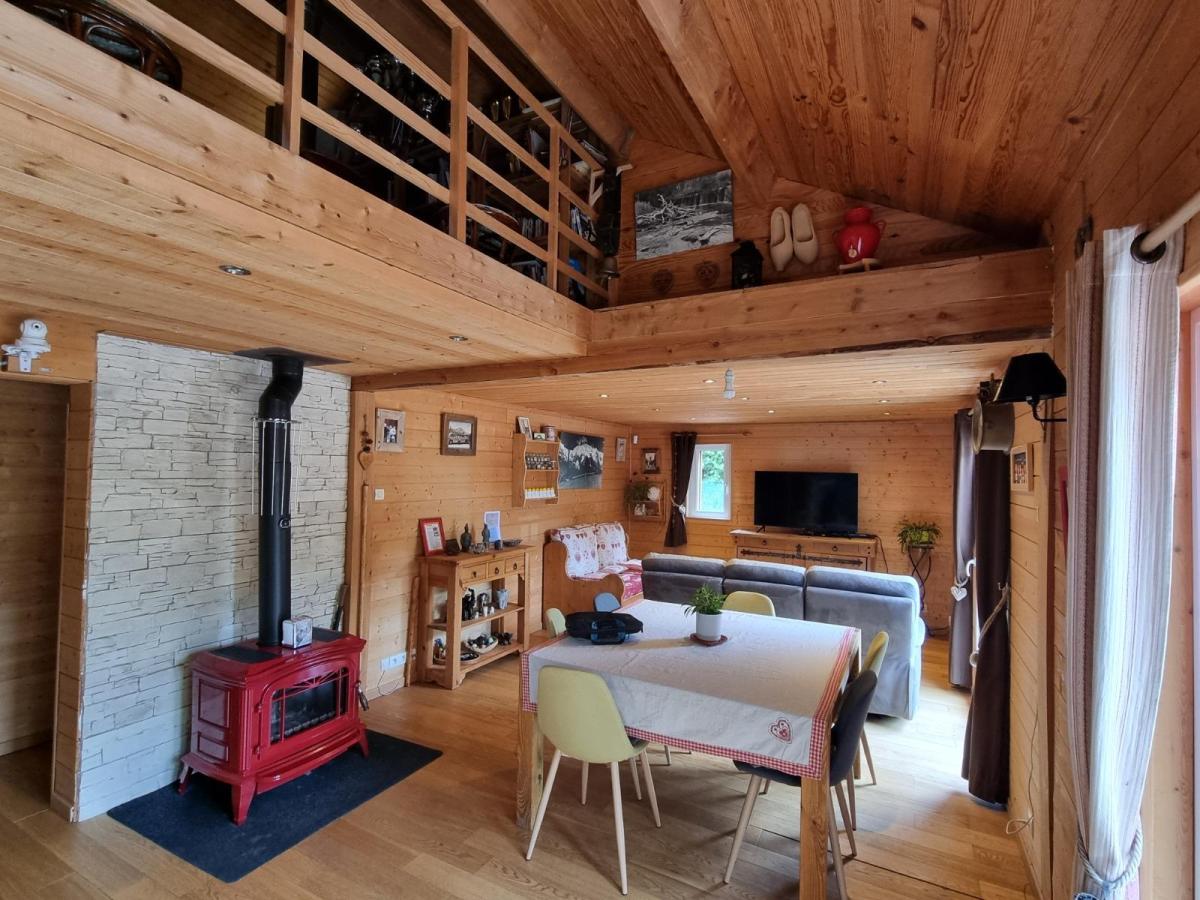Une charmante maison avec habillage bois Red Cedar intérieur et extérieur, avec esprit chalet, vie de plain pied, comprenant :