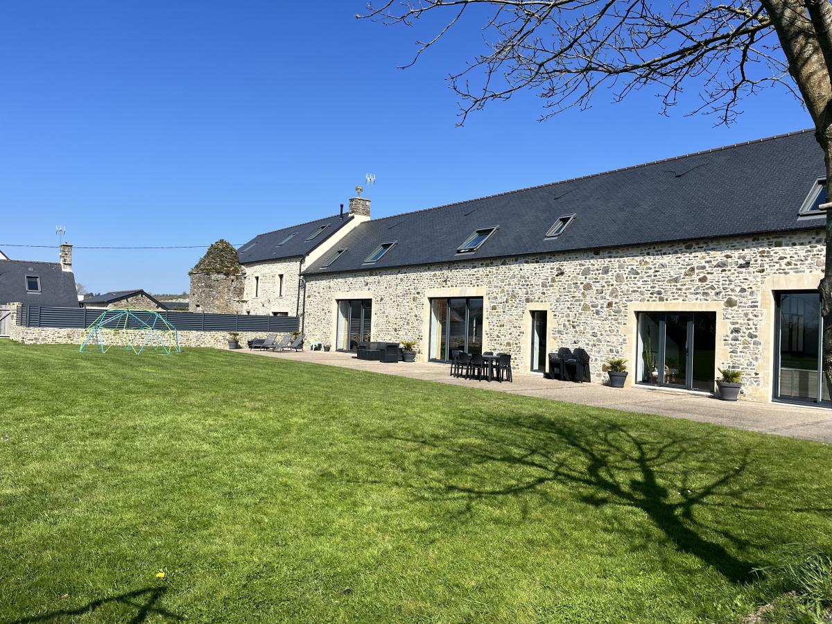 1°) Maison principale de 300 m² comprenant: entrée avec placards, WC avec lave-mains, vaste séjour avec cuisine ouverte équipée avec ilot, espace détente avec SPA + sauna + salle d’eau avec WC , chaufferie/buanderie, autre cuisine équipée, une chambre avec salle d’eau et WC privatifs. A l’étage : salon en mezzanine, 5 chambres dont deux avec salle d’eau/WC privatifs et deux avec salle d’eau/ WC + baignoire privatifs. Cour devant avec deux garages/atelier + grenier, salle de sport à la suite. jardin derrière avec grande terrasse.
