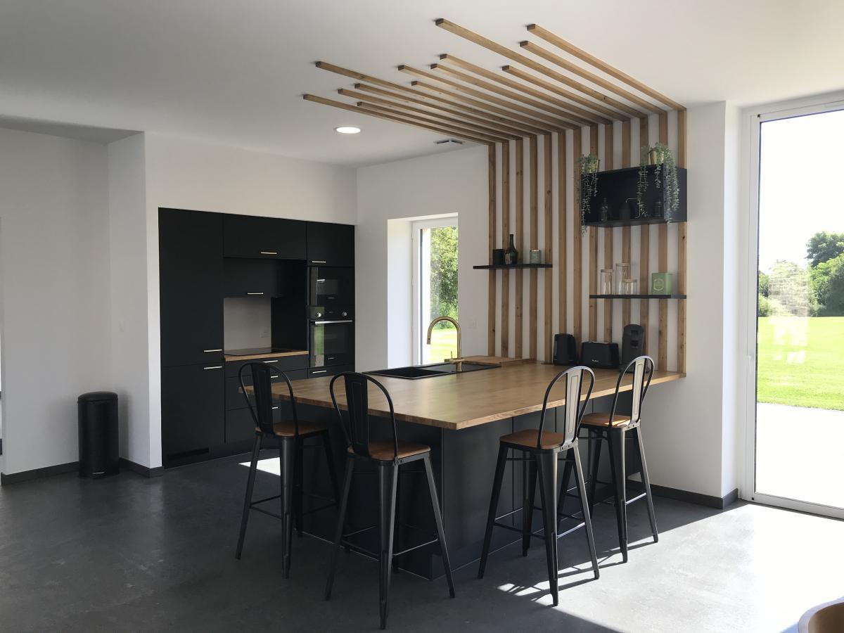 2°) Une seconde maison de 150 m² comprenant: grand séjour avec cuisine ouverte équipée + ilot central et poêle à granulés, dégagement, buanderie, WC. Au premier étage : palier, salle de bains, WC, trois chambres. Au deuxième étage : suite parentale comprenant chambre, espace bureau, salle d’eau avec WC et dressing. Cour devant et jardin derrière avec terrasse.