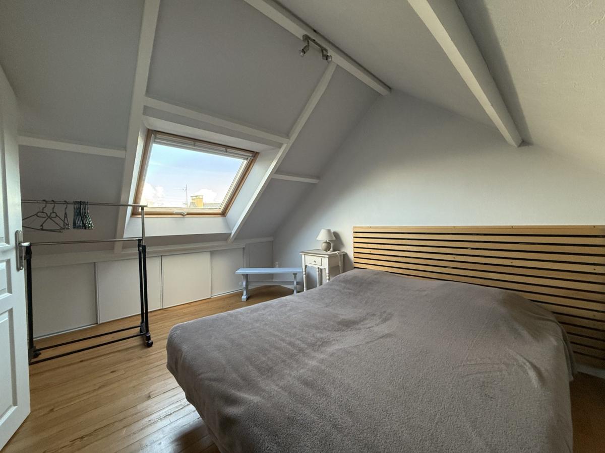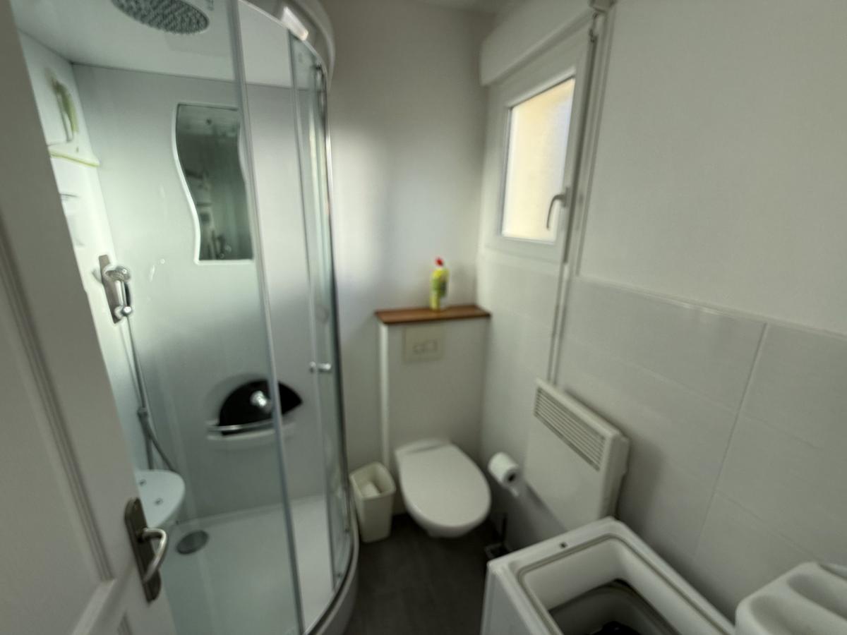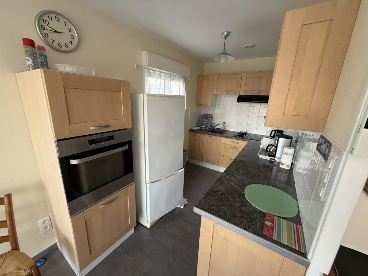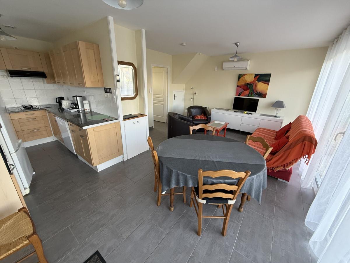 - Au rez de chaussée: séjour avec cuisine ouverte équipée, salle d'eau avec WC.
