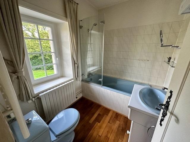- A l'étage: palier avec placards, salle de bains avec WC, une chambre avec placards, seconde vaste chambre avec placards et salle d'eau privative avec WC (possibilité de diviser en deux chambres).
