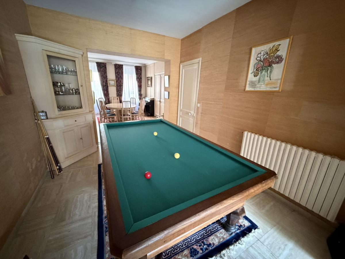 - Jardin derrière avec terrasse dallée et store banne, dépendance comprenant une salle de jeux et une cave à vin. Jardin à l’arrière de la dépendance clos de murs avec cellier.