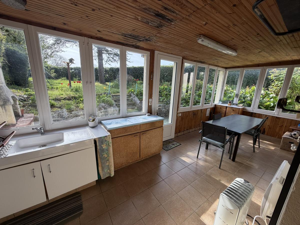 - Au rez de chaussée: séjour avec cheminée, cuisine, véranda, dégagement, salle d'eau avec WC, une chambre avec placard.