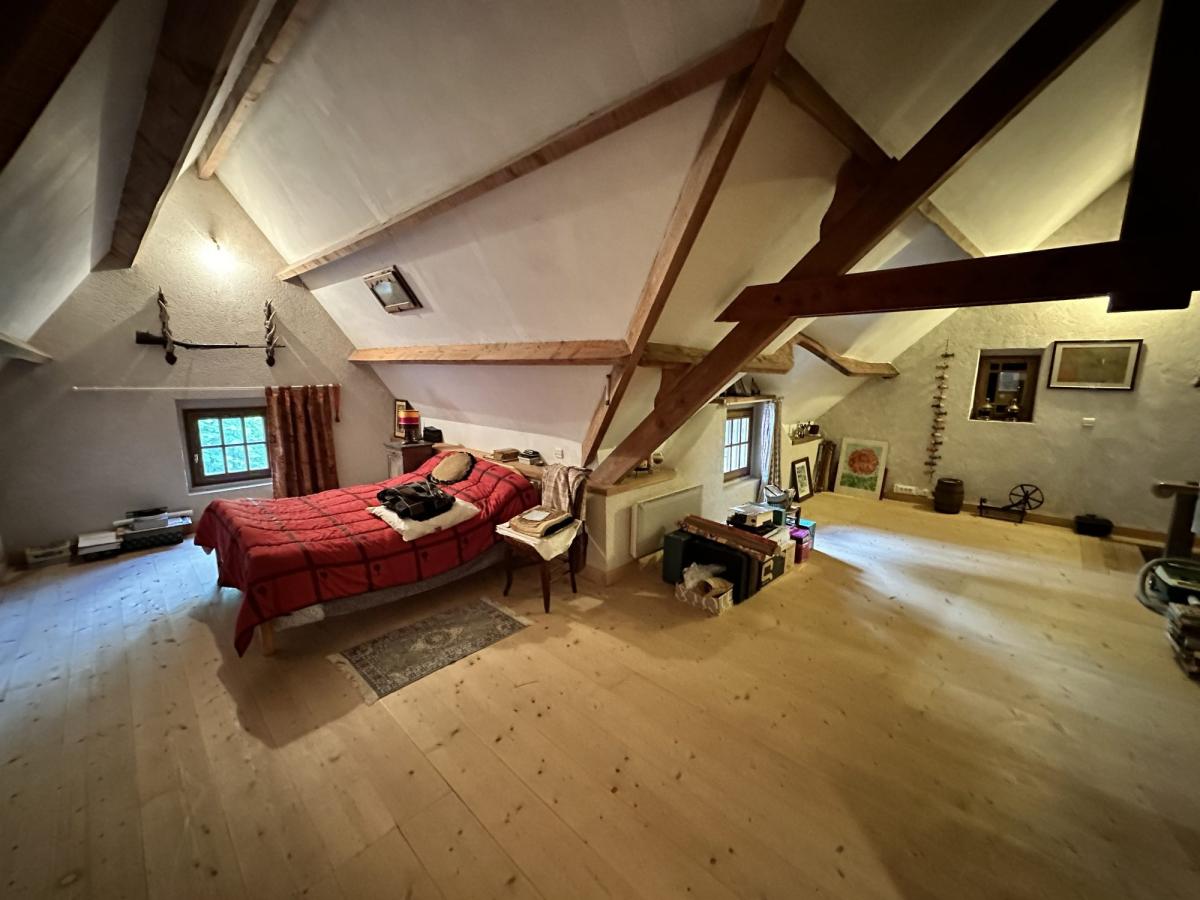 - A l'étage: très grande chambre avec salle d'eau et WC privatifs, et par un second escalier une chambre en mezzanine donnant accès à une autre grande chambre.