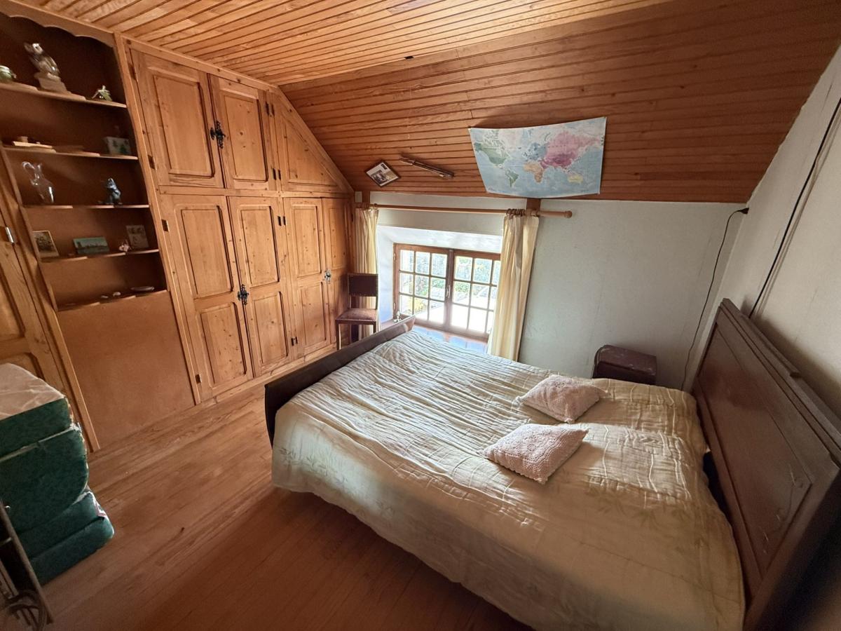 - A l'étage: palier, deux chambres avec placards, WC, ancienne salle de bains.