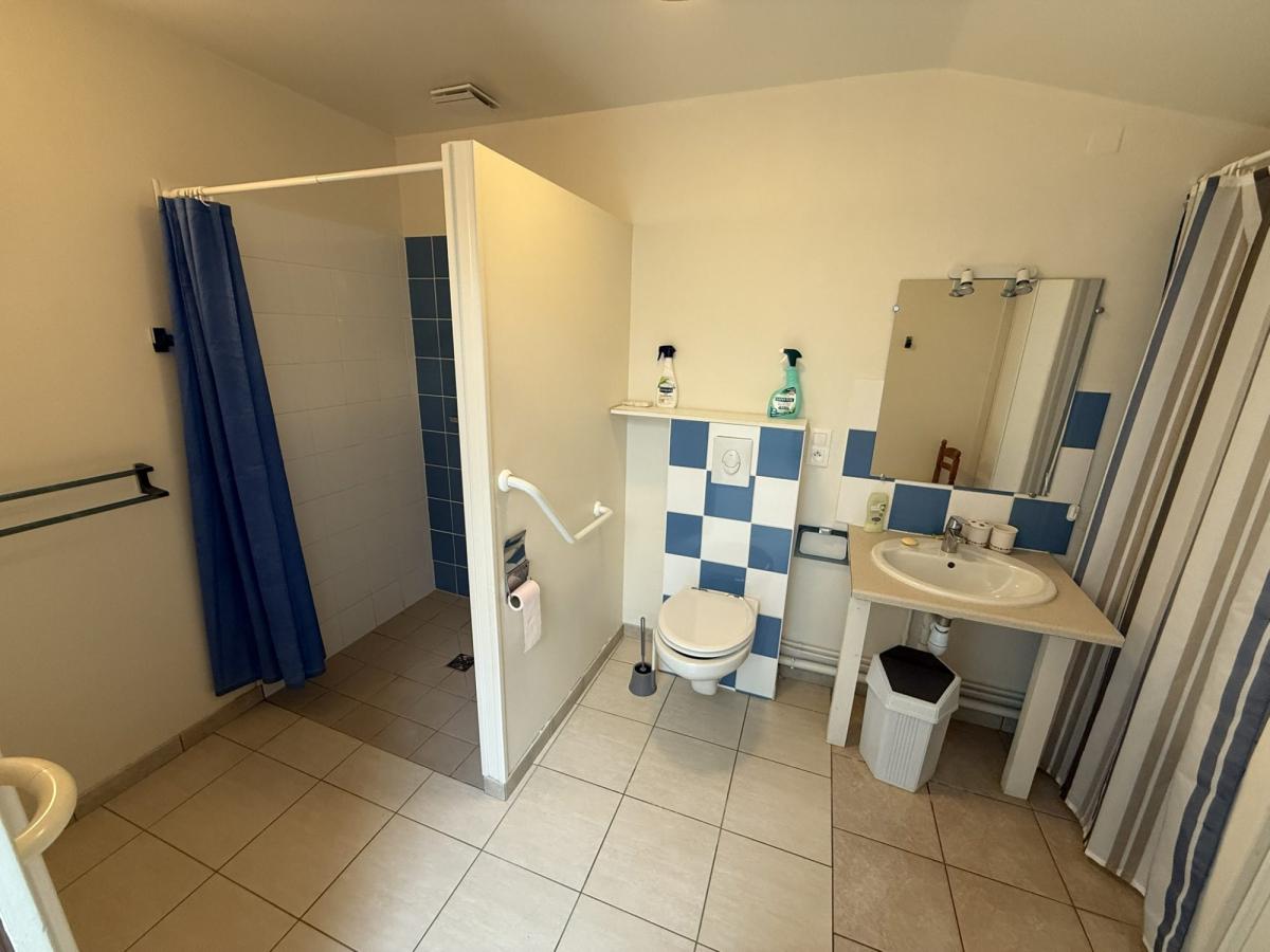 - Au rez de chaussée: entrée avec placard, séjour avec cheminée, véranda, cuisine équipée, une chambre avec salle d'eau privative avec WC (normes PMR), autre WC.