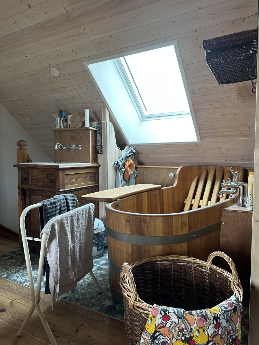 La seconde maison vous offre : Un salon/séjour avec poêle à bois (22m²), une cuisine de 17m². Au premier étage : Une chambre avec salle de bains et wc.
