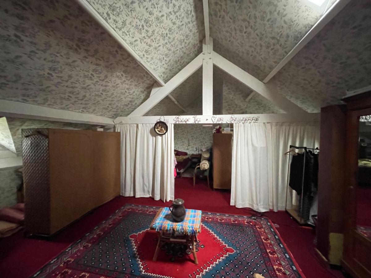 A l'étage : trois pièces dont une avec toilette et point d'eau.