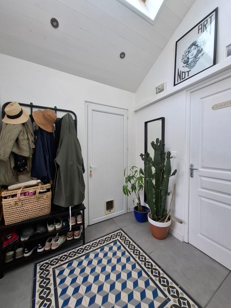 - au rez-de-chaussée : entrée, toilette, cuisine, salle à manger, salon avec cheminée, cellier/ espace buanderie (non comptabilisé dans la surface hab.).